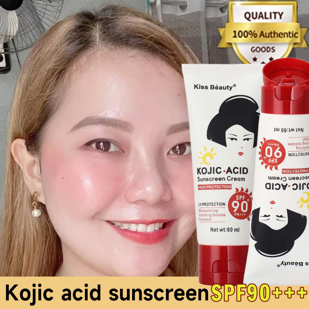 Kiss Beauty KOJIC ID Sunscreen tabir surya SPF90+++ SUNBLOCK WAJAH Krim & Badan Sunscreen Cream 60g Fade Spot - Sun UV P