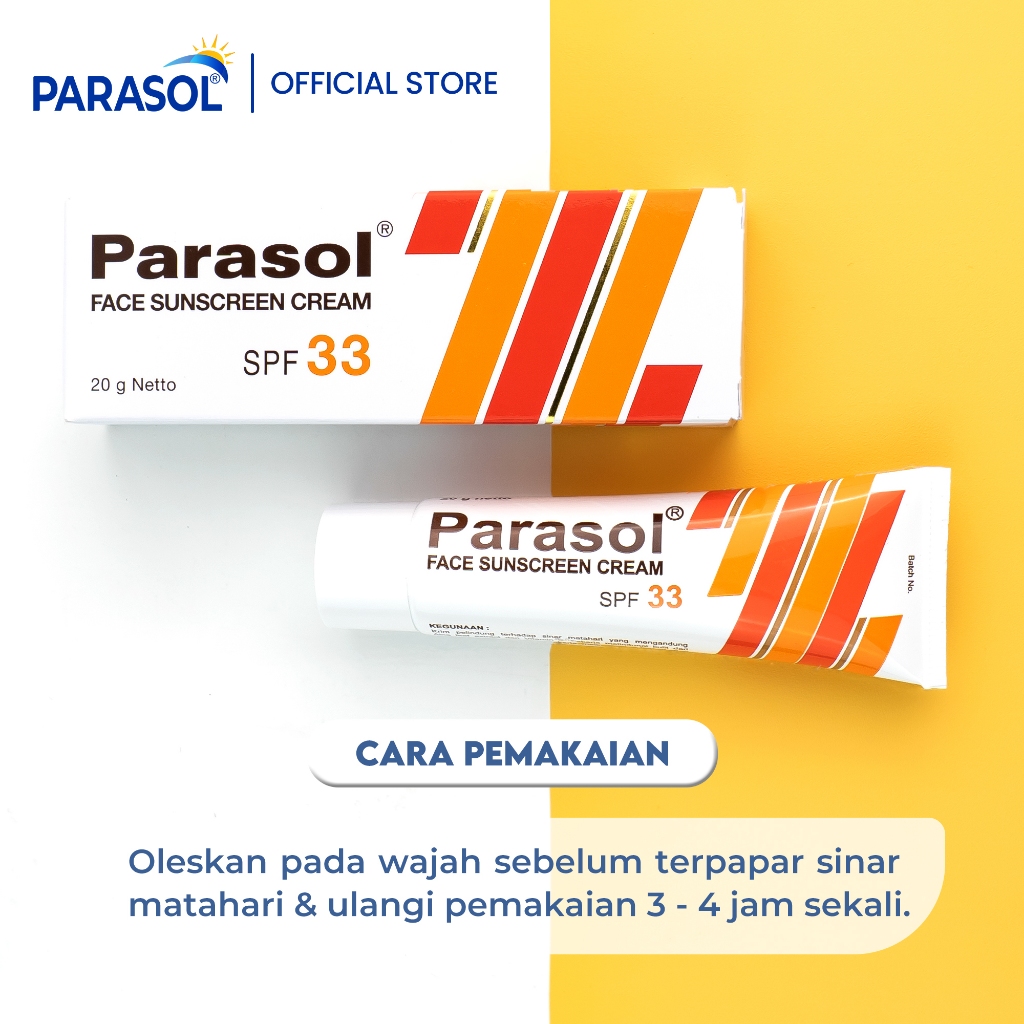 Parasol Cream Sunscreen wajah SPF 33 20 gr [ Sunblock Parasol Water Resistant Tabir Surya Perawatan Muka dan Badan Tidak