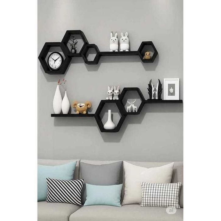 Rak Dinding Tempel Pajangan Ruang Tamu Kamar Tidur Aesthetic Hexagonal