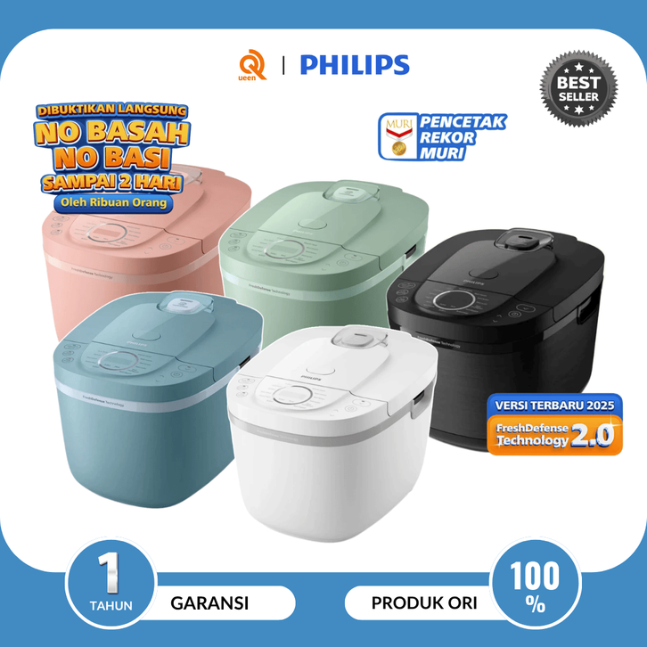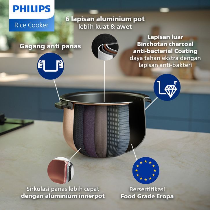 RICE COOKER PHILIPS ORIGINAL 1.8 L - 3000 DIGITAL SERIES HD4812/31 HITAM 18 MENU MASAK ANTI LENGKET ANTI BAU