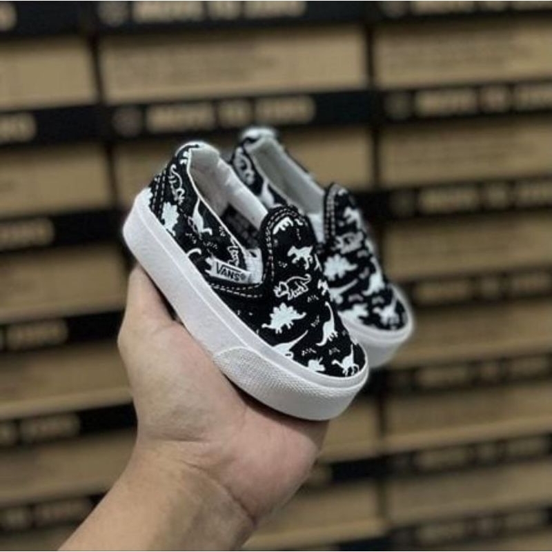 (Kualitas Premium) Sepatu Anak Slip On Kids Dinosaurus Laki-Laki Perempuan Vans Old Skool Sepatu Sneakers Anak Cowok Cew