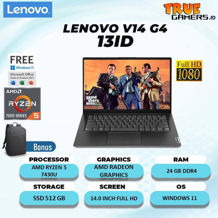 Laptop Gaming Lenovo V14 G4 RYZEN 5 7430U 24GB 1TB WIN 11+OHS SSD 14.0FHD