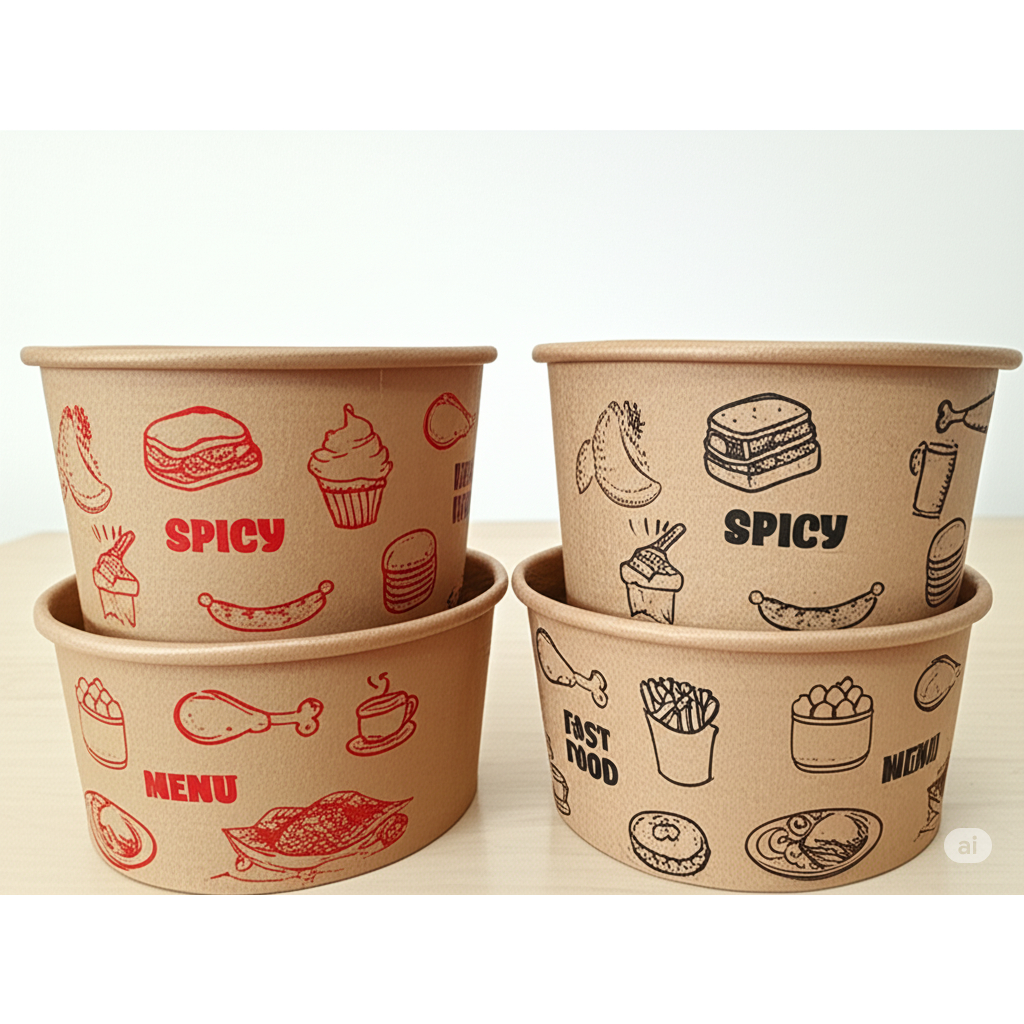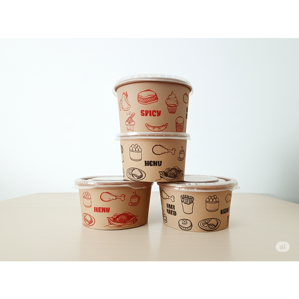 Paperbowl Motif Printing Mangkok Kertas 360ML 500ML 650ML 800ML dengan tutup isi 25pcs Murah