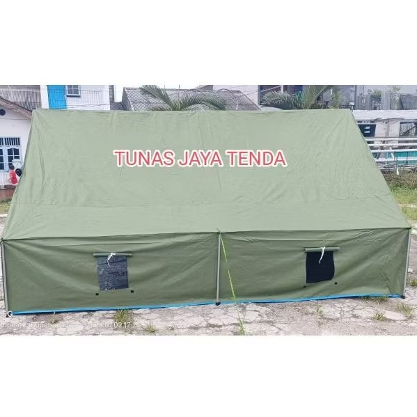 TENDA PRAMUKA REGU BARAK KOMANDO DINIR STANDAR TNI 3x4x2 KAPASITAS 12-15 BAHAN PREMIUM LION D300 FULLSET pintu 2