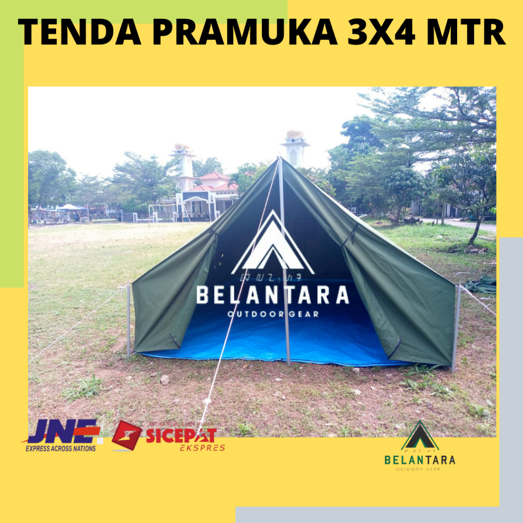Tenda Pramuka 3x4 waterproof Kapasitas 8 10 12 Orang Bahan Dinier 300 Lion tanpa tiang belantara