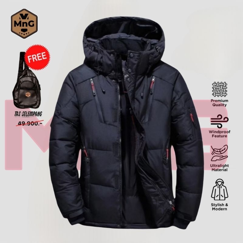 Mngstoreco Jaket Pria Waterproof Tebal Warna Hitam