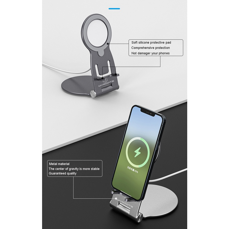 Myroots Holder Standing Aluminium HD-ZJG-21 Holder Magsafe Wireless Charging Universal Mobile Phone Iphone - Android - T