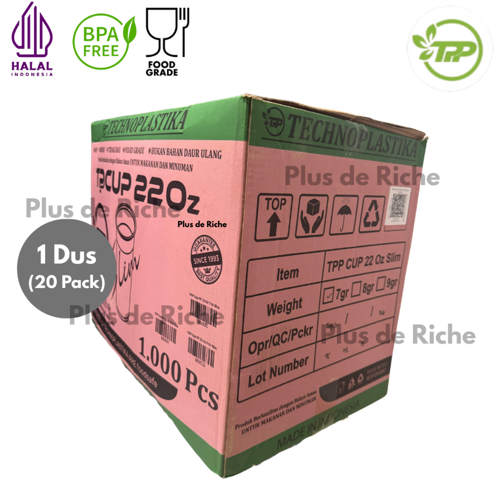 [ GROSIR ] 1 KARTON GELAS PLASTIK 22 Oz Slim TECHNO isi 1000 pcs