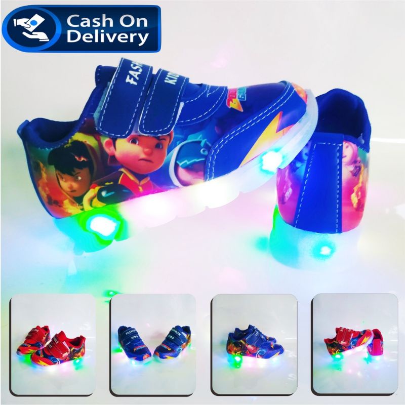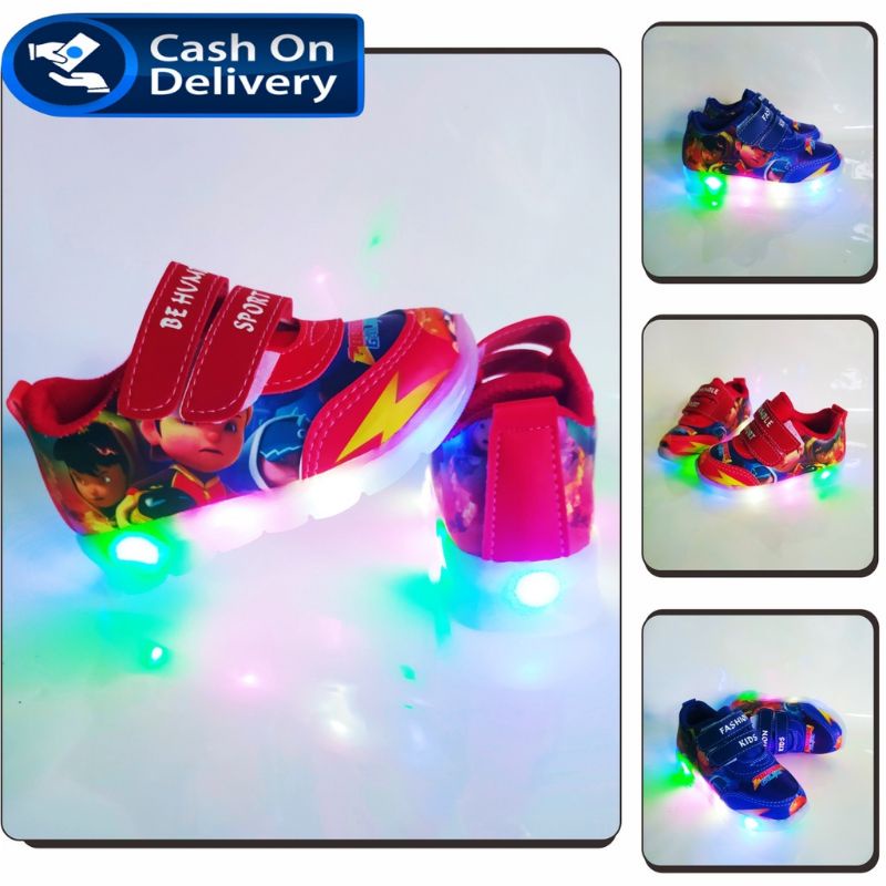Sepatu Sneakers Sport Lampu LED Boboiboy Anak Cowok 1 2 3 4 5 6 Tahun/ Sepatu Sekolah TK SD Paud Anak Batita Balita/ Sep