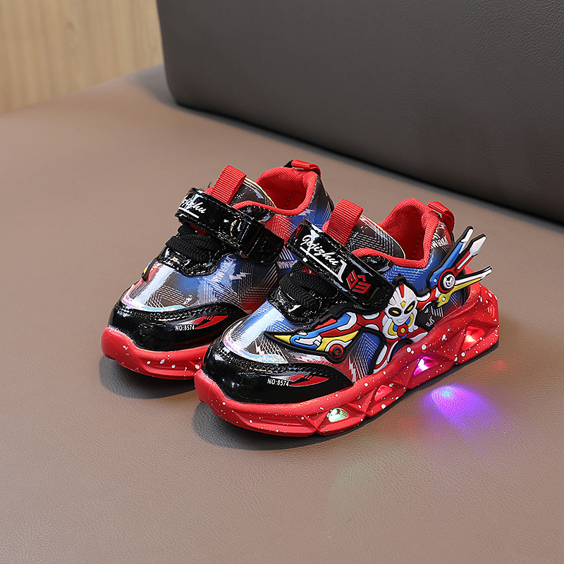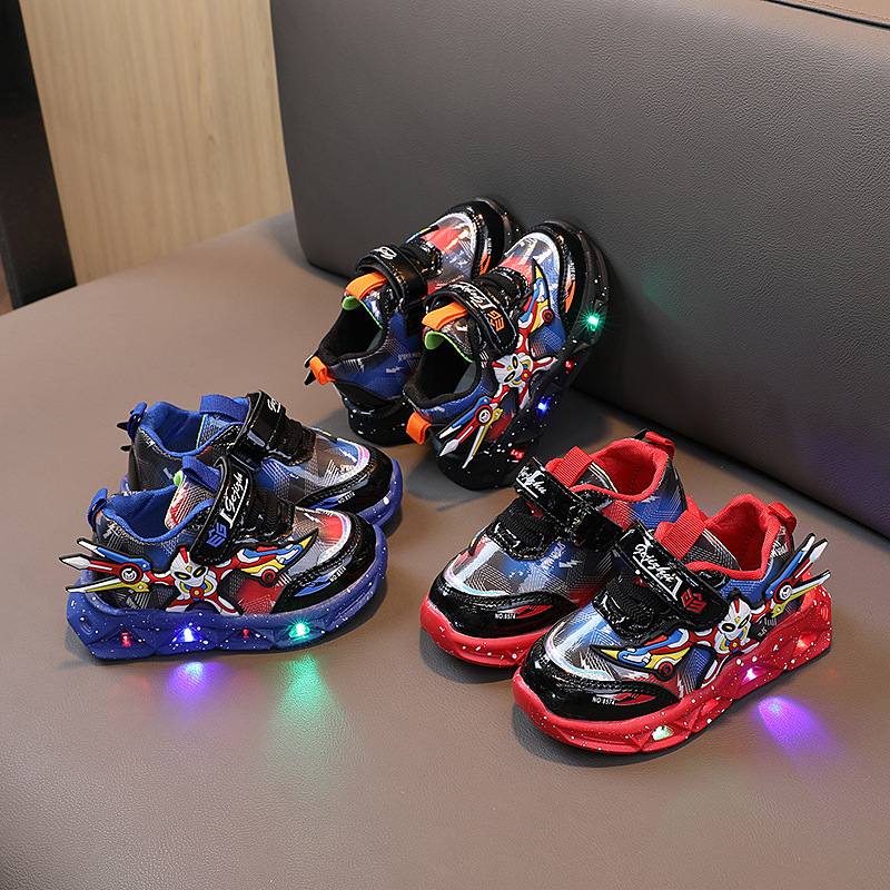 100% IMPORT! Sepatu LED Anak Laki Laki Keren Cakep Sneaker LED Anak Import Bahan PU Trend Kini