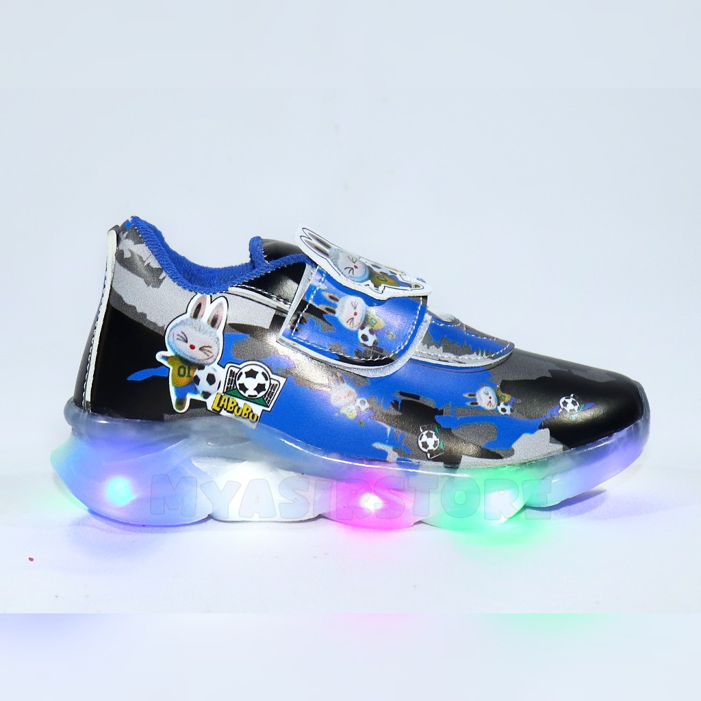 Myasirolshop Sepatu Anak Laki Laki Led Dengan Lampu Terang el Kartun Karakter Labubu Ukuran 24-32