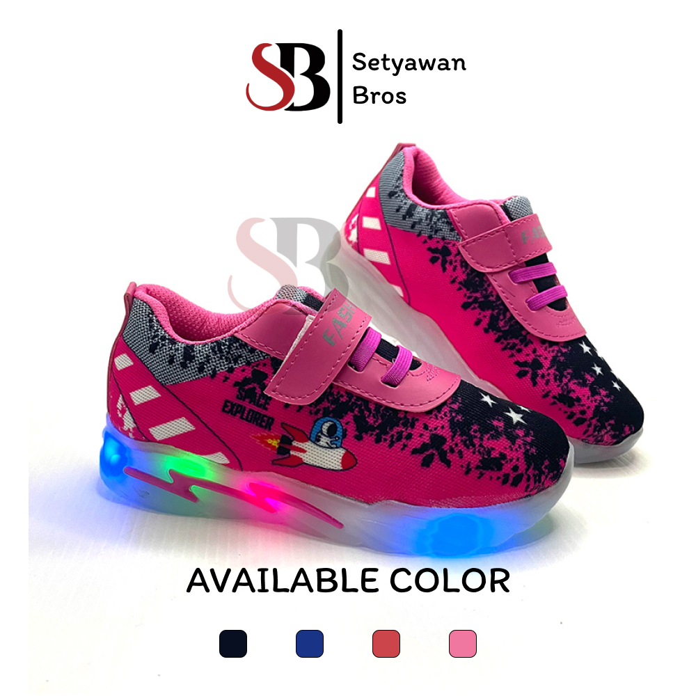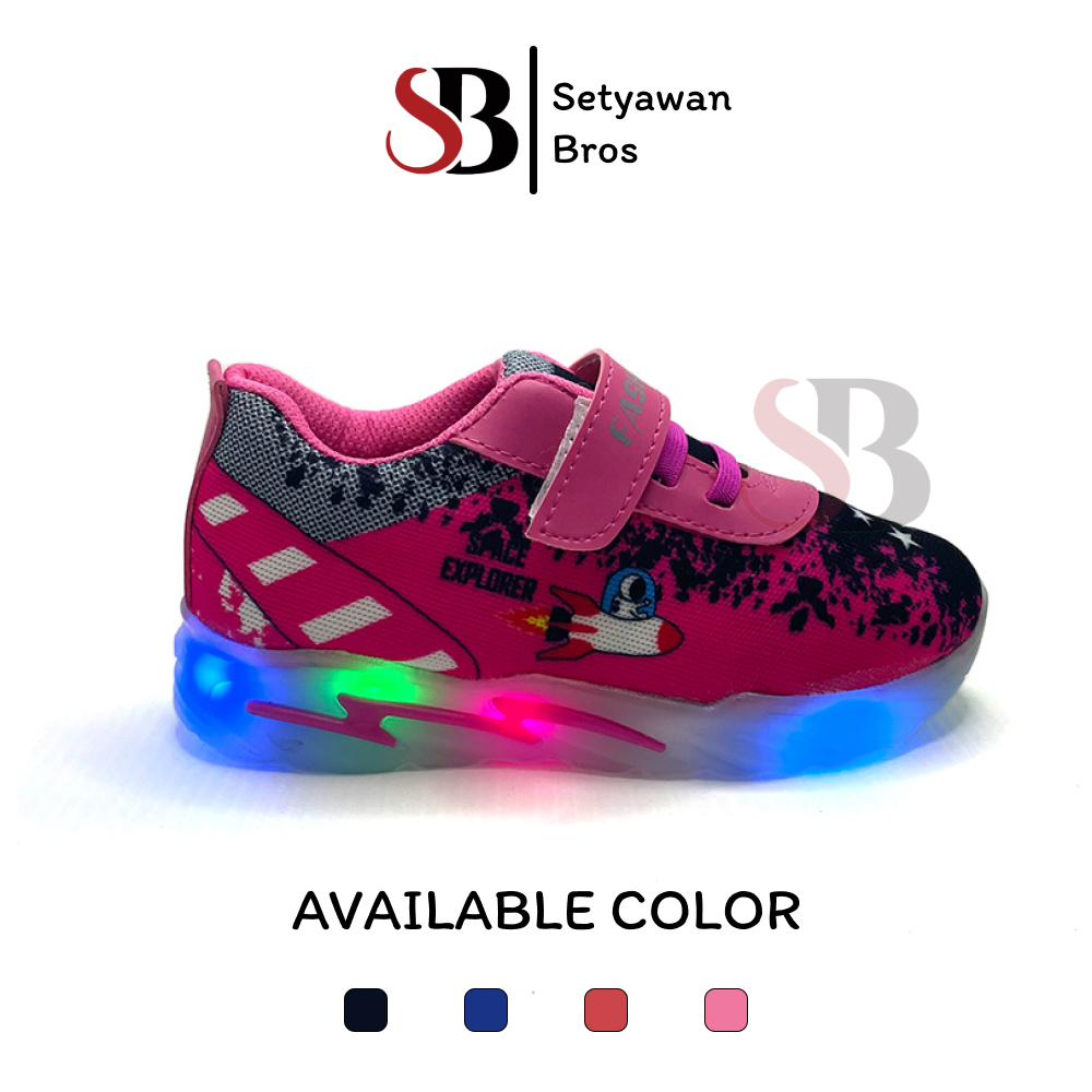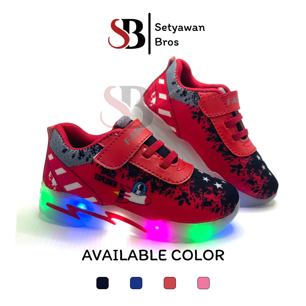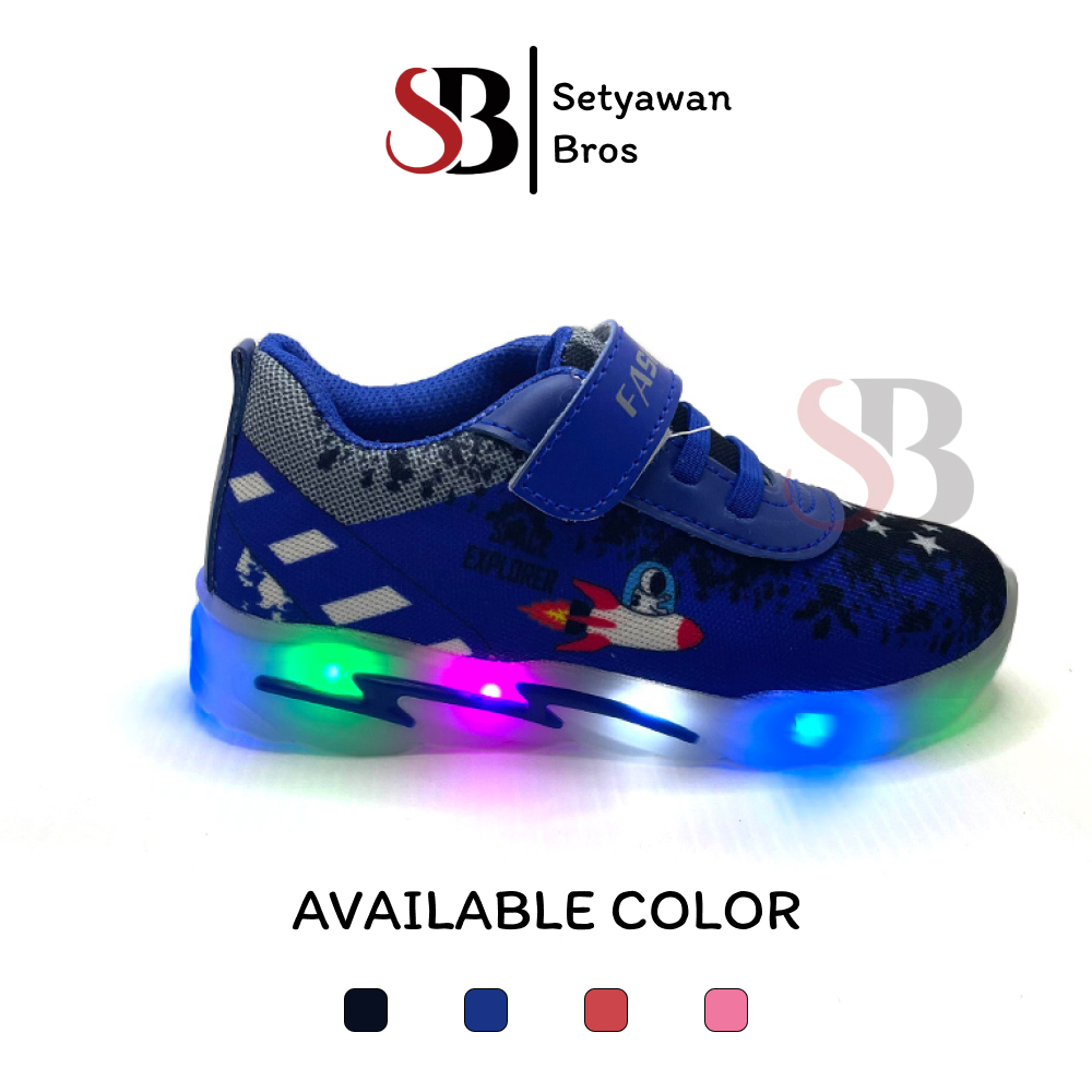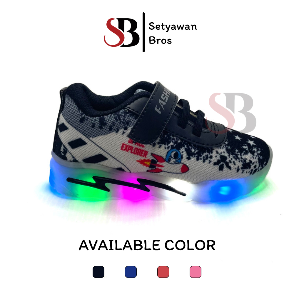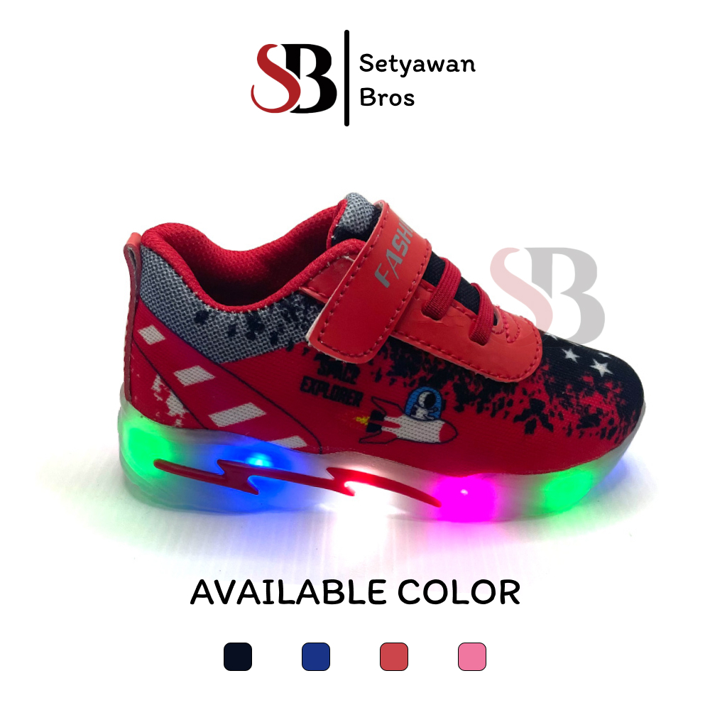 Sepatu LED Anak Laki-Laki Motif Astronot Keren Bisa Menyala Terbaru