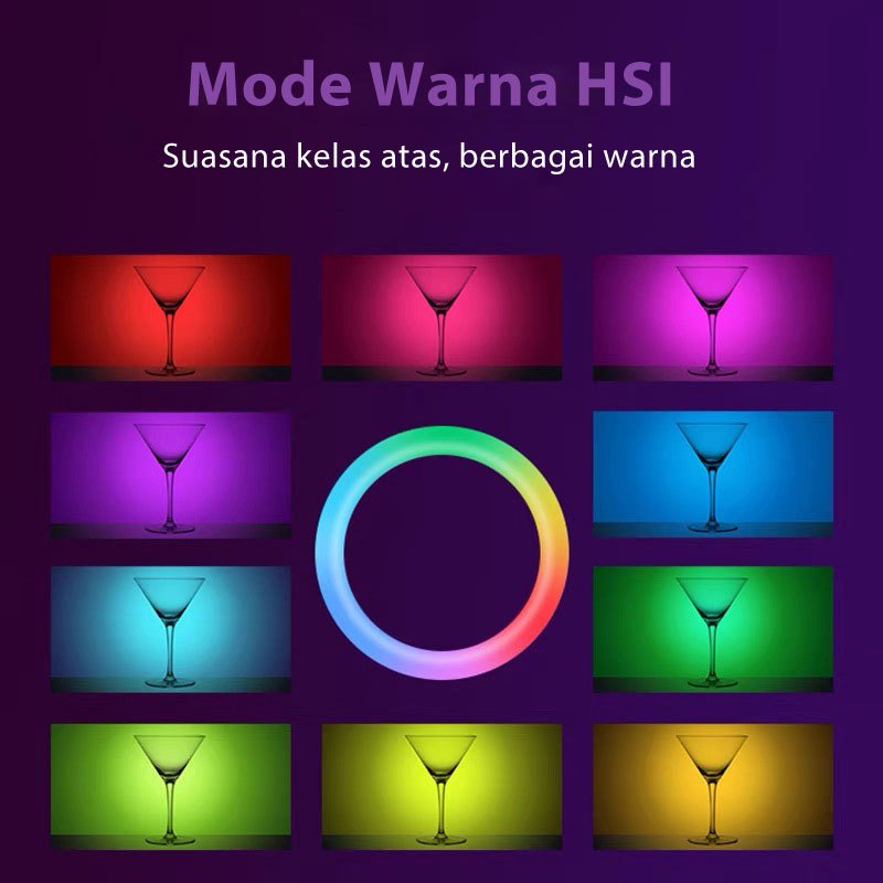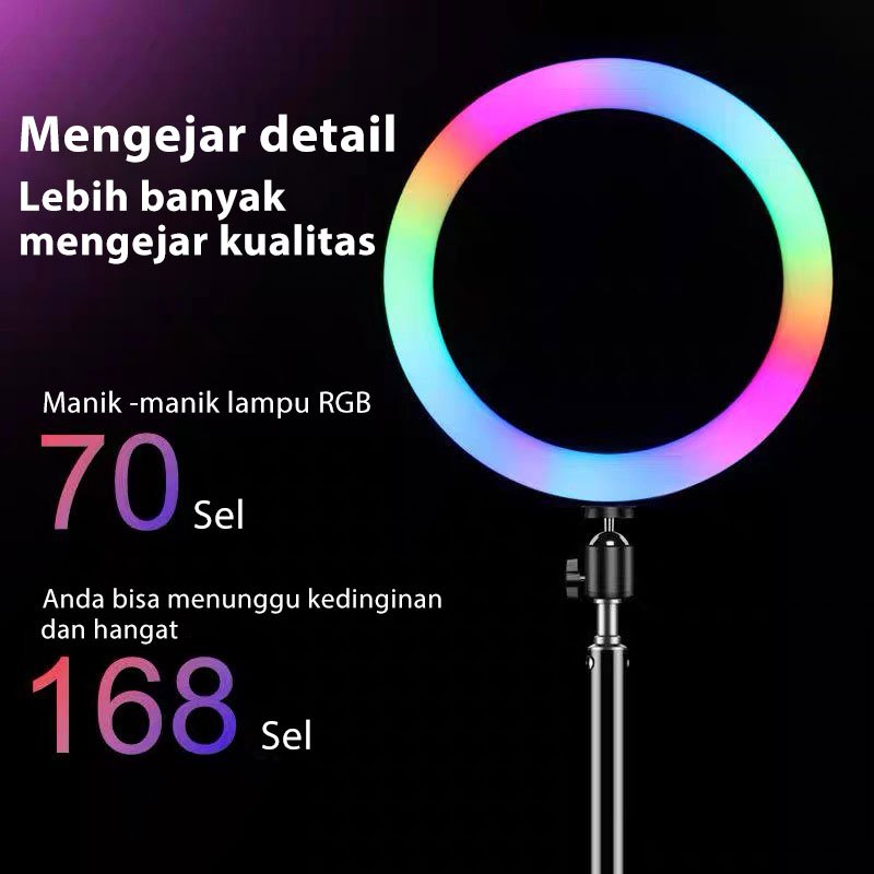 KAIY 43cm RGB RingLight+160CM/210CM Tripod+Phone Holder 3 suhu warna Lampu Fotografi Lampu LED Video Light for Live