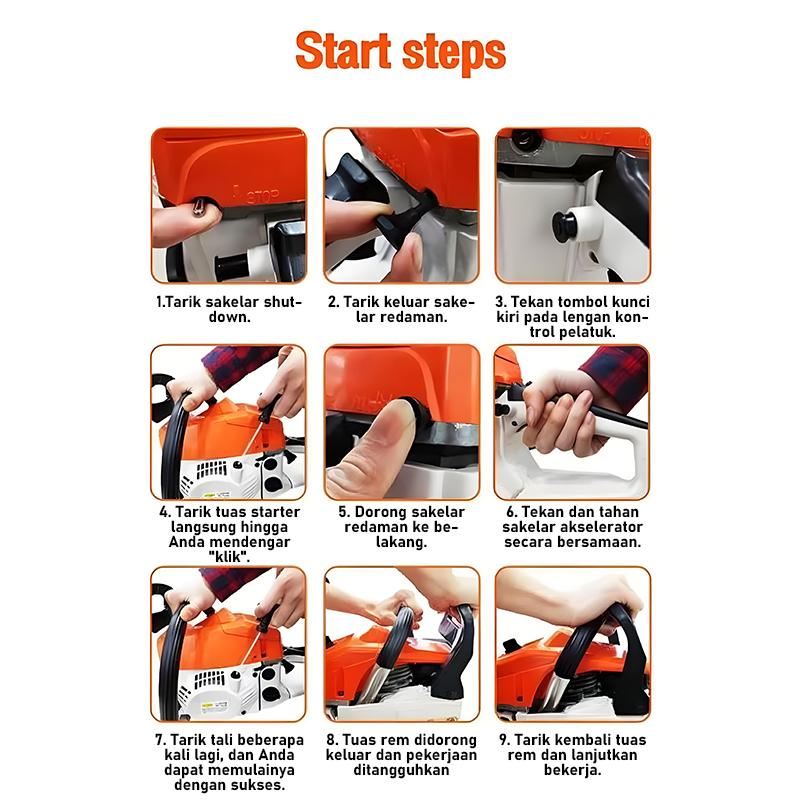 20/22/24 Inch Senso Chainsaw Mesin Potong Kayu 78CC 4Tak Gergaji Mesin / Mesin Gergaji/Chainsaw Mini