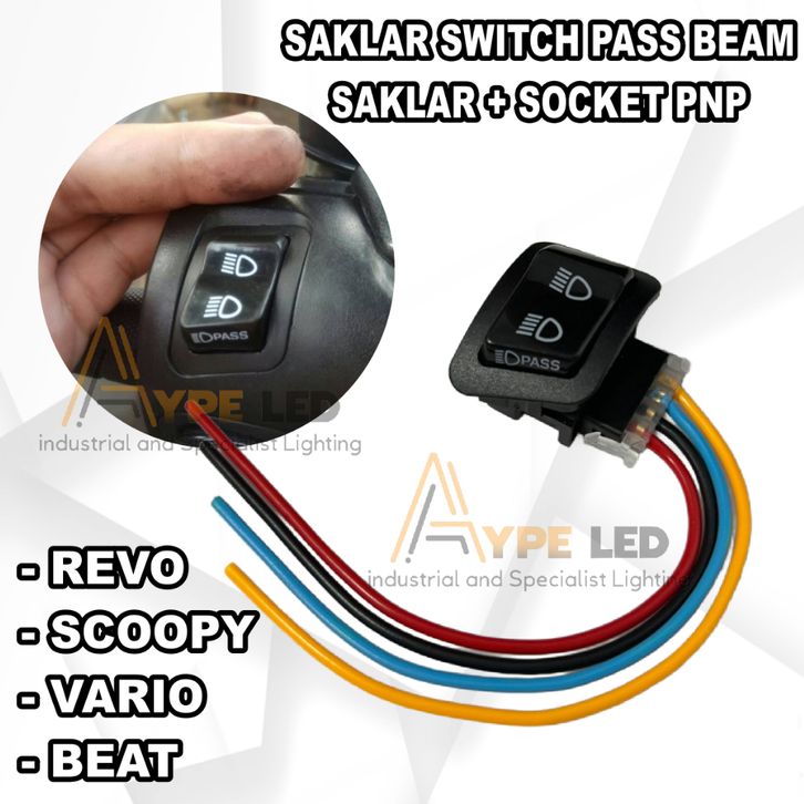 SAKLAR VIETNAM STYLE PASS BEAM 4 PIN PLUS SOCKET PNP TOMBOL SAKLAR PIW PIW VARIO BEAT REVO SCOOPY DAN LAINNYA