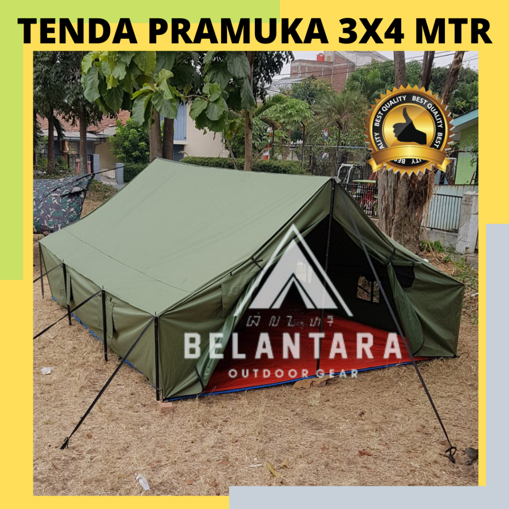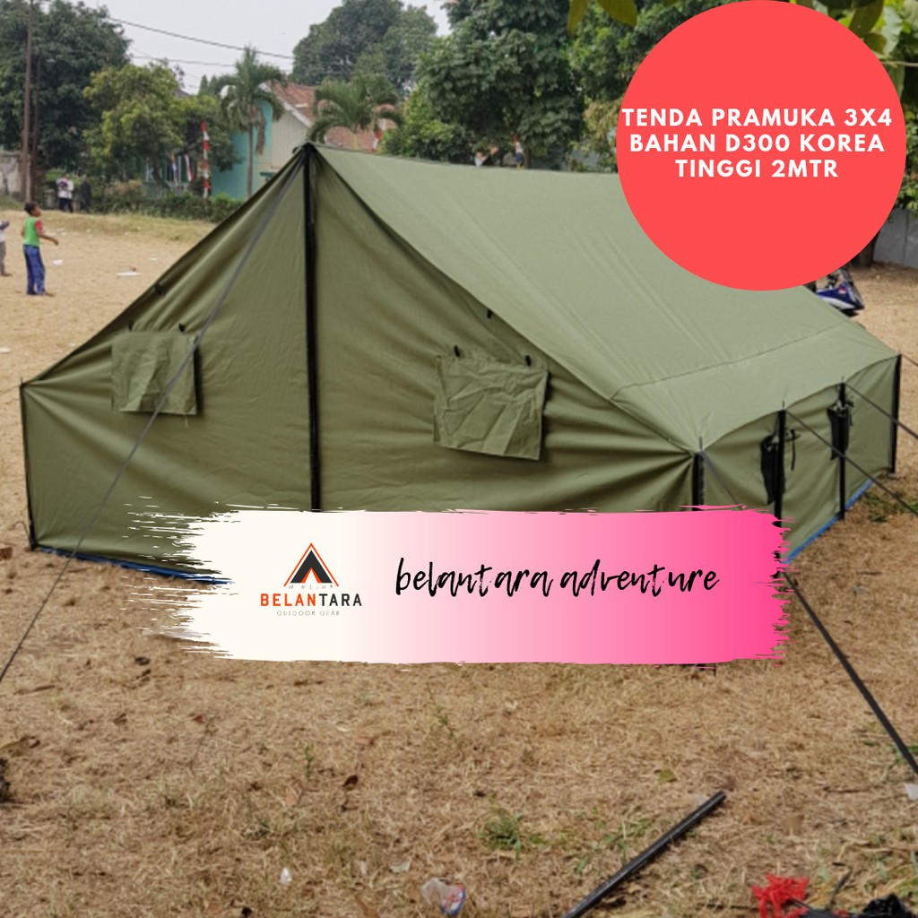 Tenda pramuka 3x4 meter kapasitas 10 12 15 orang bahan d300 waterproof peramuka full set