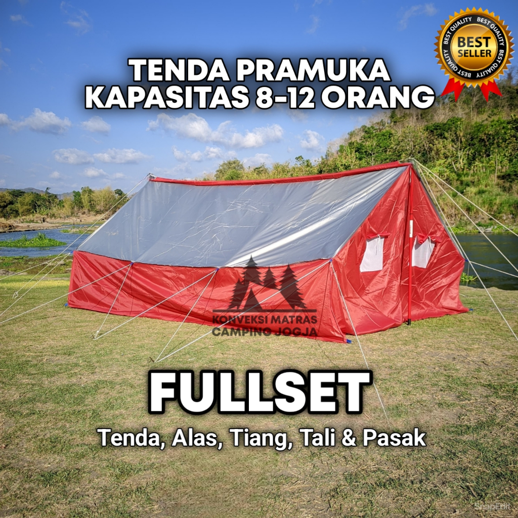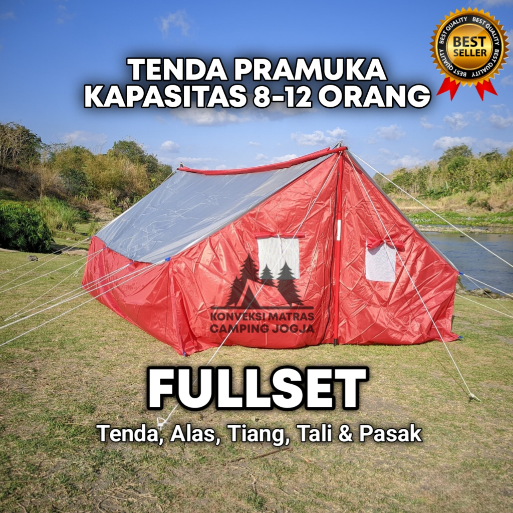 Tenda Pramuka Kap 8-12 FULLSET Tinggal Pakai | Termasuk Alas Tiang Tali & Pasak
