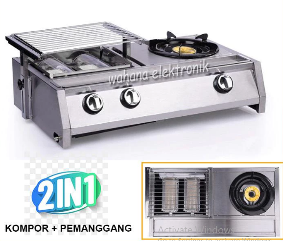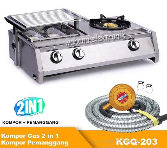 KOMPOR Gas 2 IN 1 OMICKO KGQ 203 Kompor Panggangan Plus Kompor 1 Tungku 2 in 1 ( sate,sosis, ikan, ayam )