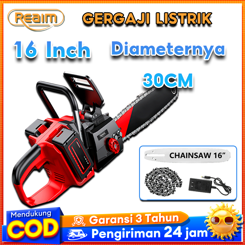 Reaim Gergaji Listrik 16 inci Mesin Chainsaw Gergaji Potong Pohon Kayu Gergaji Cordless Gergaji