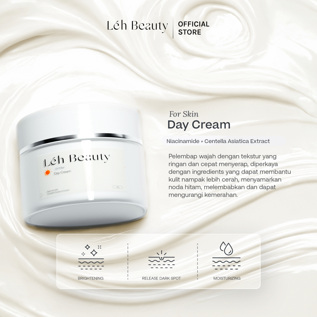 LEH BEAUTY Day Cream UV Filter - Cream Day dengan Niinamide, Centella Asiatica Extrt dan UV Filter