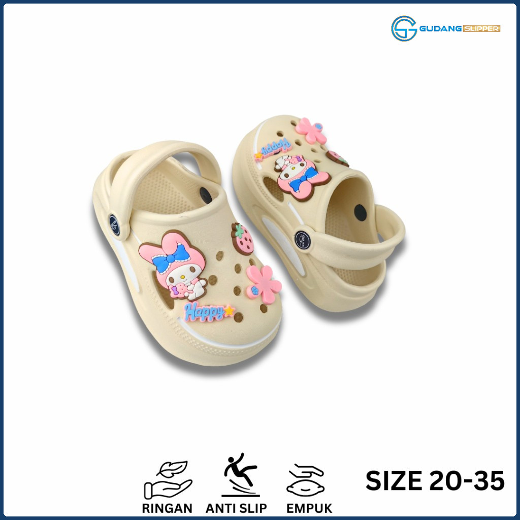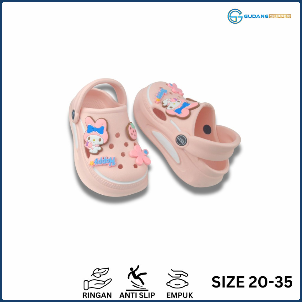 GS Sandal Baim Premium Anak Perempuan Cewek Viral Sendal Kodok Bayi Korean Jibbitz Melody Kelinci Size 20-35