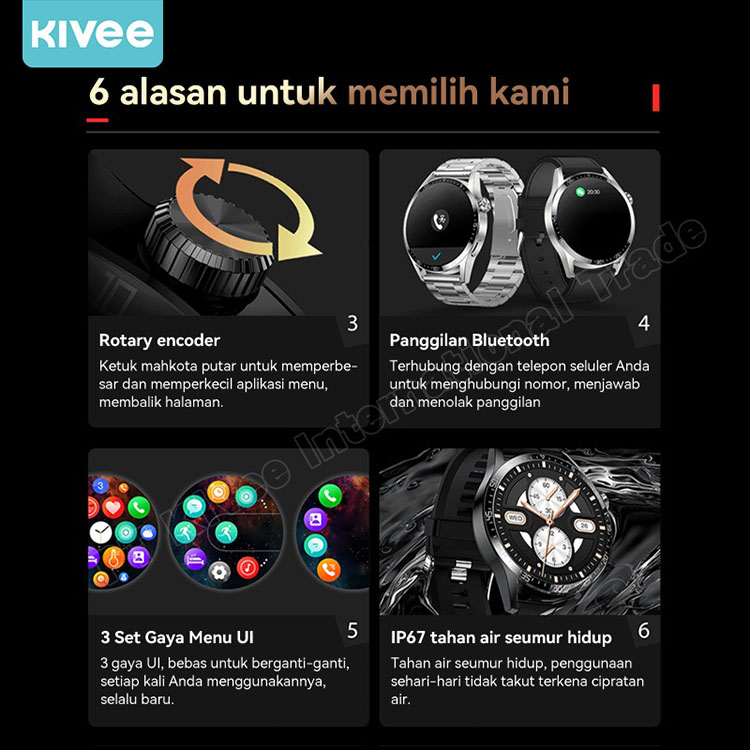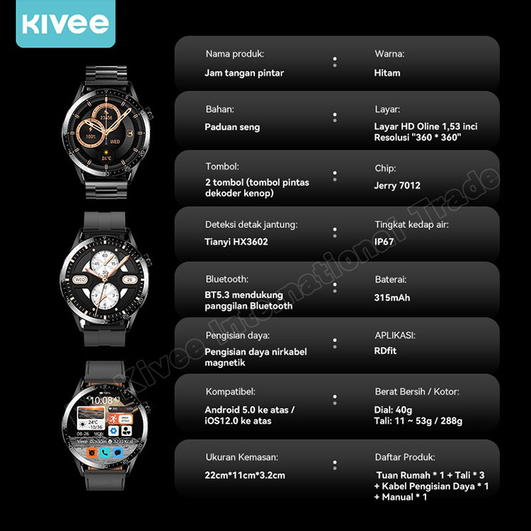 Kivee Smartwatch Bluetooth Gps 1.53 Amoled Sports Fitness 24 Hours Spo2 Monitoring Ip67 Original Jam Tangan Pintar Pria