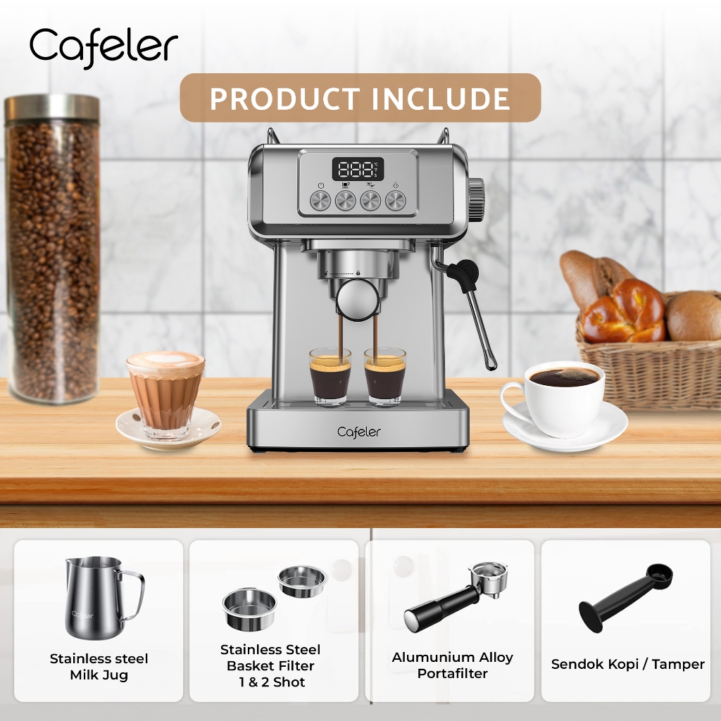 Cafeler Mesin Kopi Espresso 20 Bar Coffee Maker Stainless Steel Fast Heating Sistem
