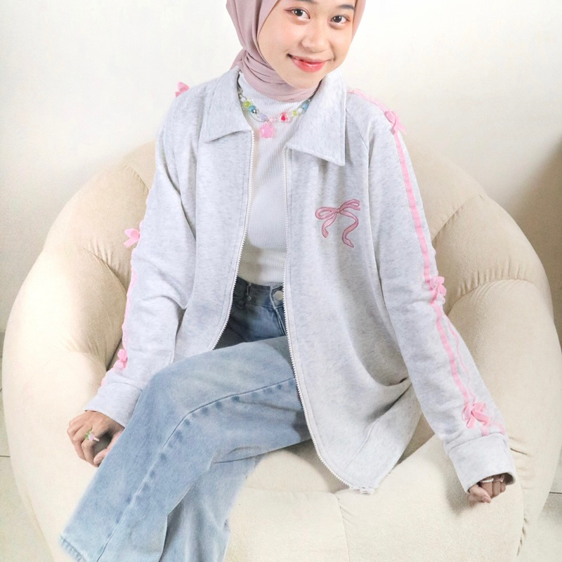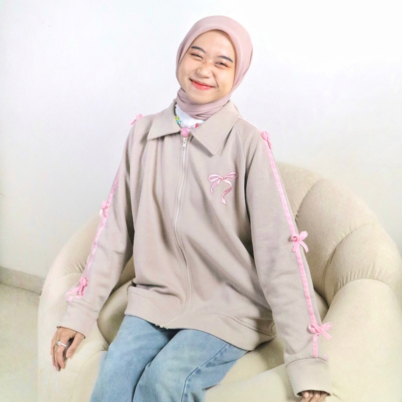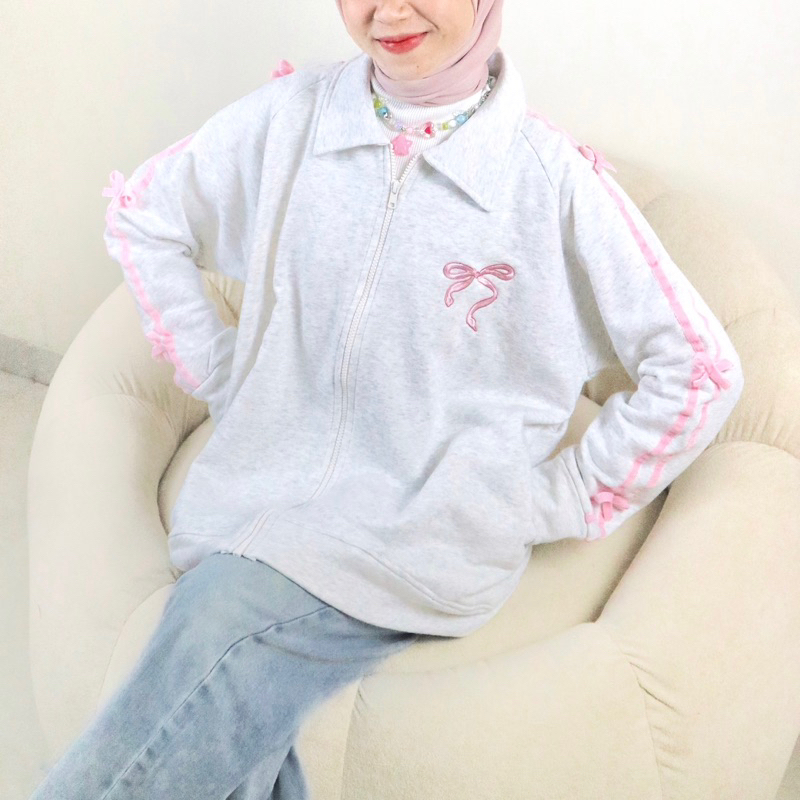 RIBBON HOODIE JACKET - Hoodie Wanita Jumper Wanita Jaket Wanita Jaket Korean Look Jaket Outer Oversized Jaket