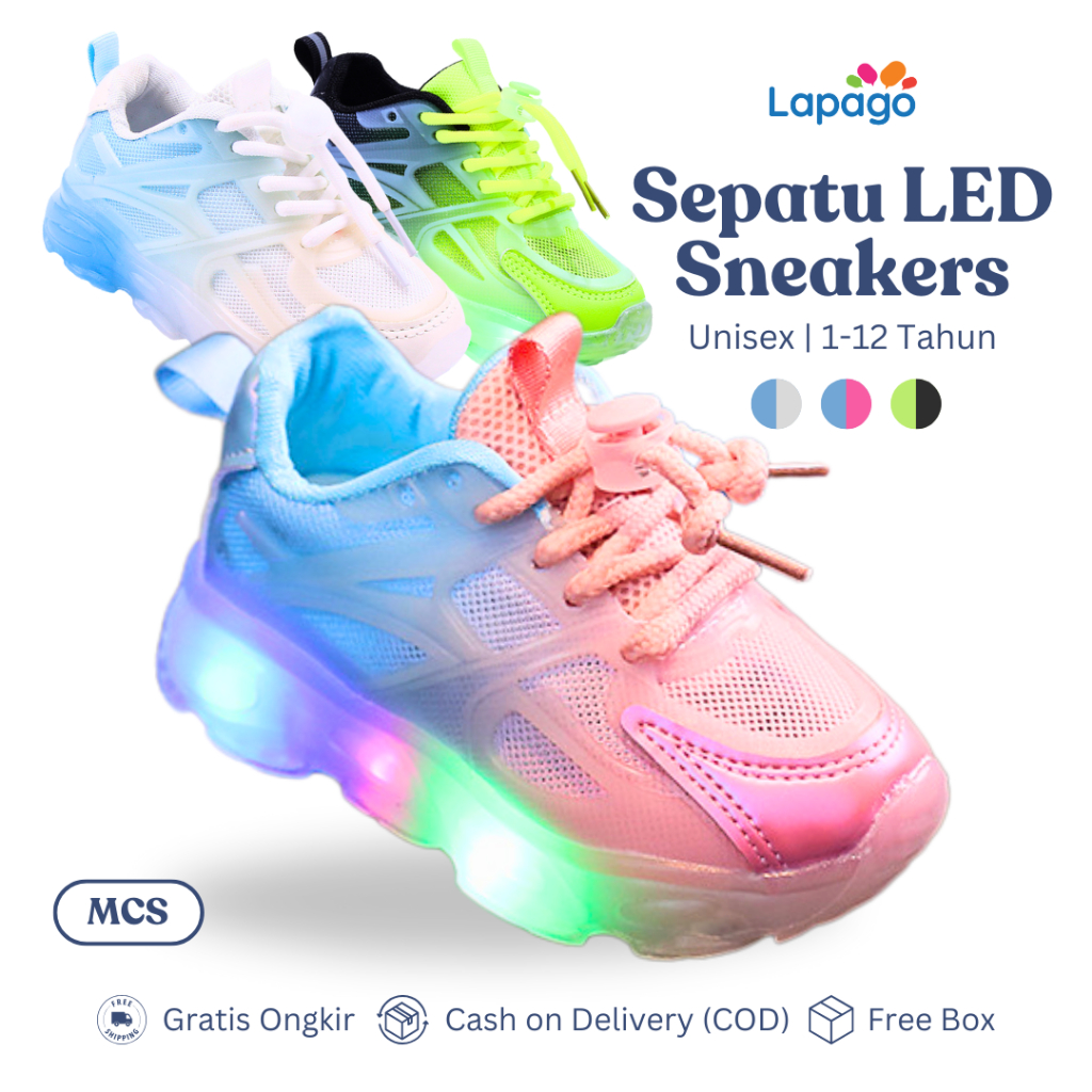 LAPAGO FREE BOX Sepatu Sneakers Anak Laki Laki Perempuan LED Sport Usia 1 - 12 Tahun Type MCS