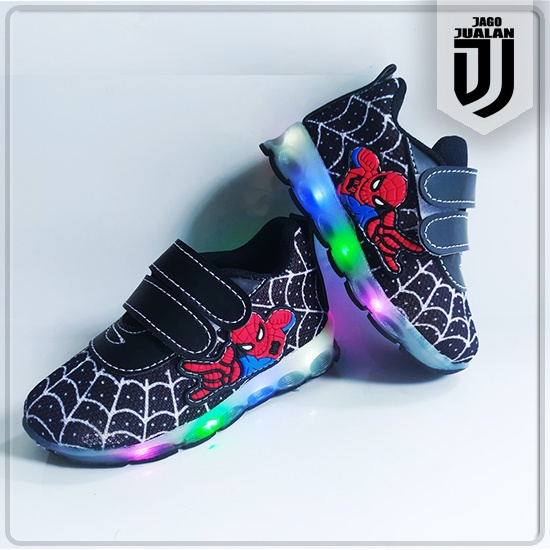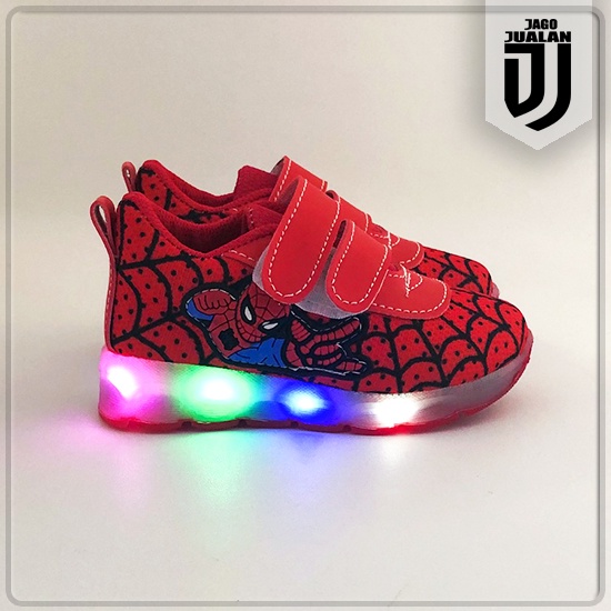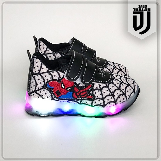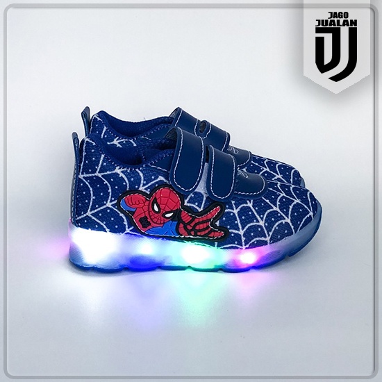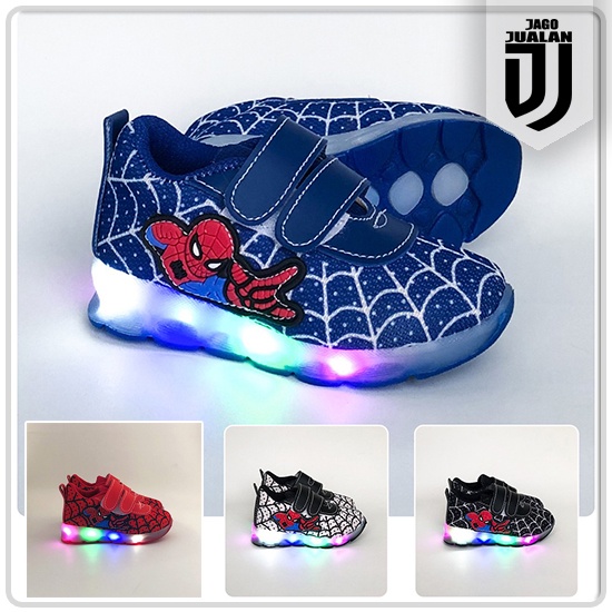 Sepatu Kets Lampu LED Anak Balita Cowok Motif Spiderman / Sepatu Sneaker Perekat Anak usia 1 2 3 4 5 6 tahun / Sepatu ME
