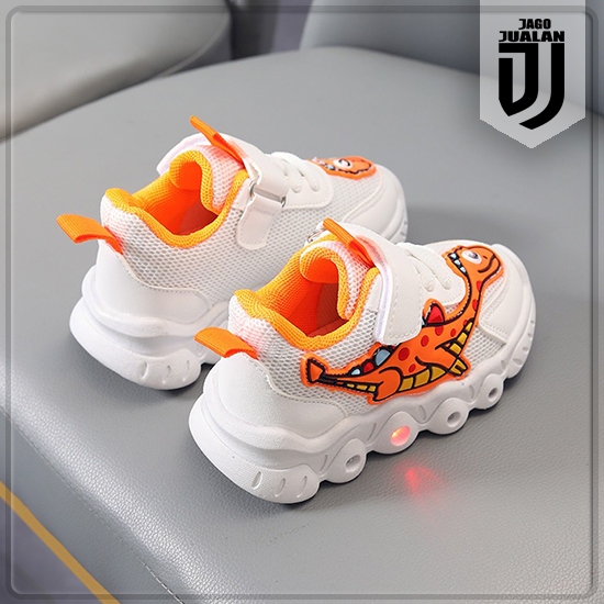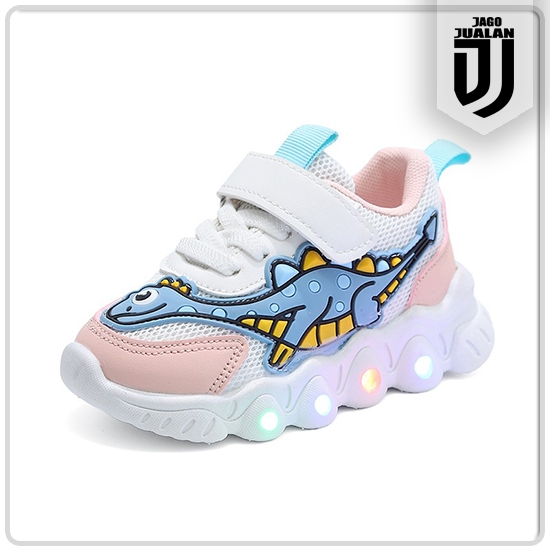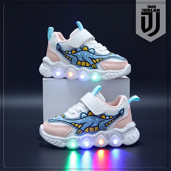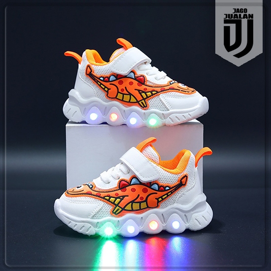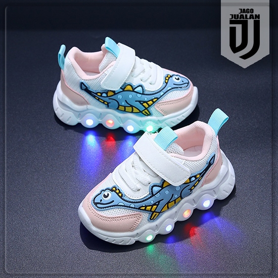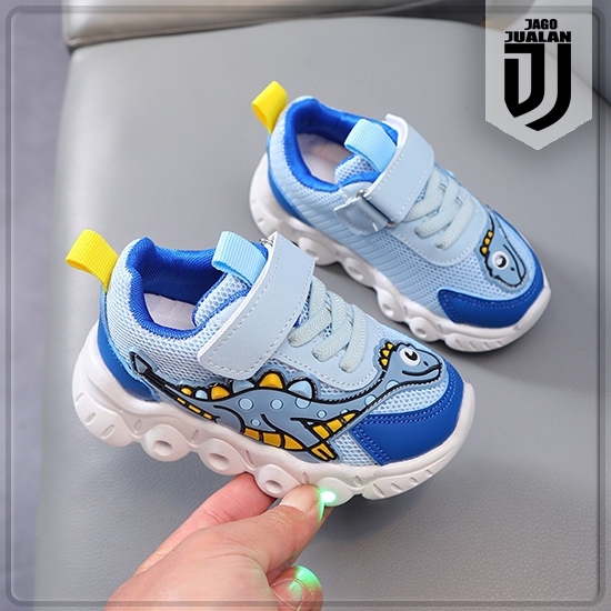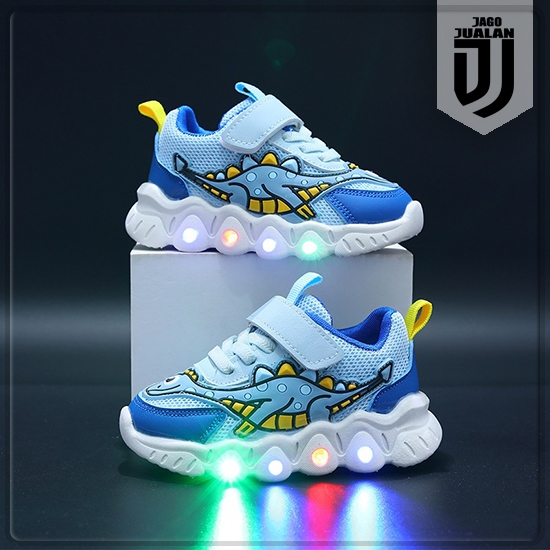 Sepatu Sneakers Lampu LED DINO Anak usia 1 2 3 4 5 6 tahun / Sepatu Kets Tali Perekat Anak Balita Cowok Motif Dinosaurus