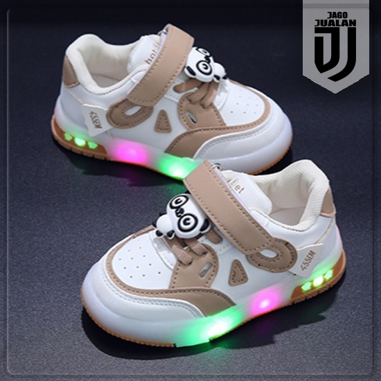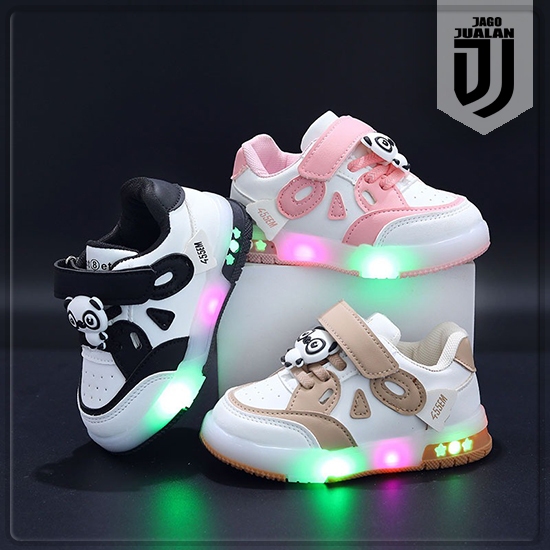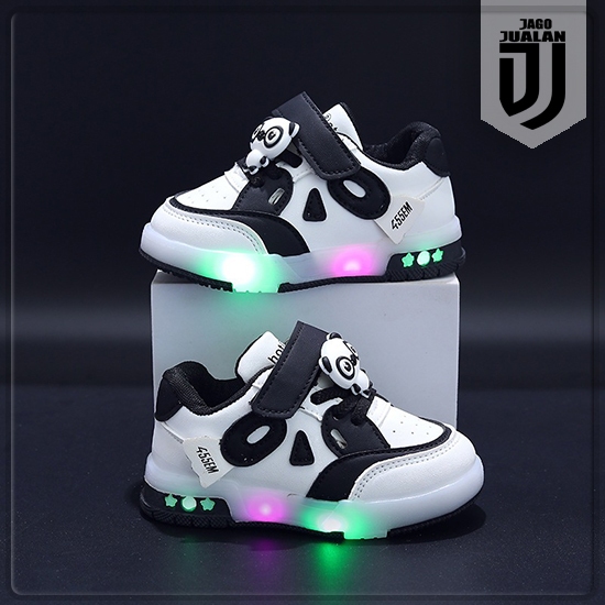 Sepatu Kets Lampu LED Anak usia 1 2 3 4 5 6 tahun / Sepatu Sneakers PANDA Tali Perekat Anak Laki Laki Perempuan Lucu / S