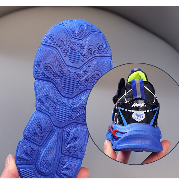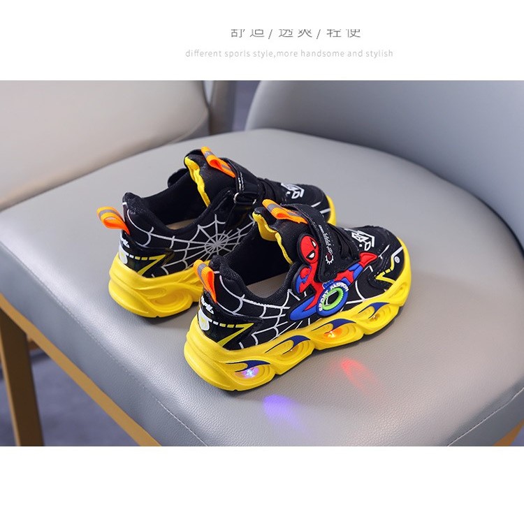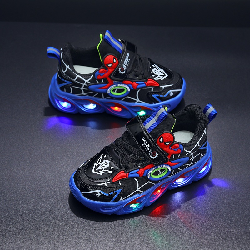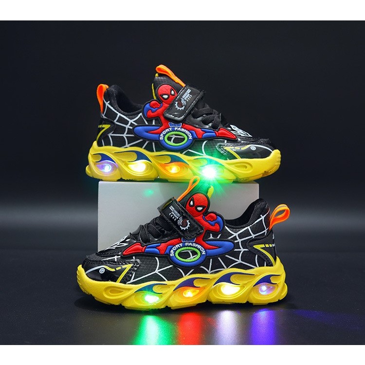 FREE BOX Sepatu LED SPIDERMAN anak laki laki cowo Sepatu Balita Nyala Ukuran Size 21-30