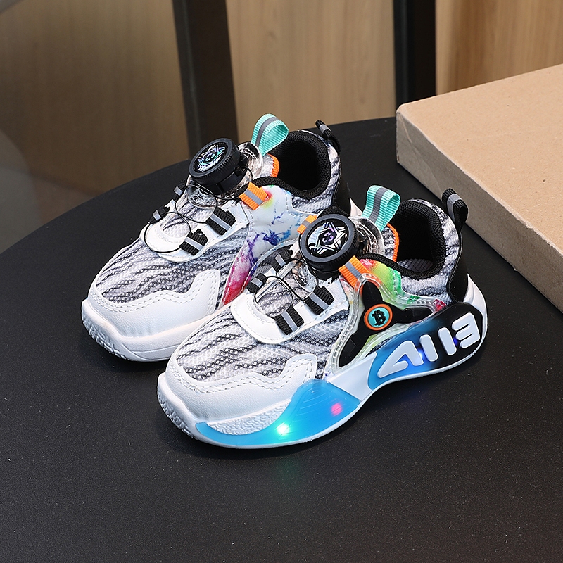 Sepatu Sneakers LED Anak Laki Laki Import Sneaker Anak Balita Impor Sepatu Anak Cowok LED Motif Warna Warni Simple Denga