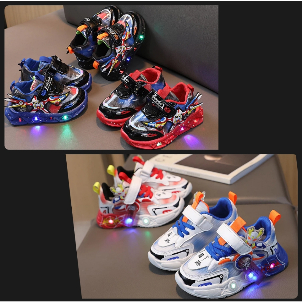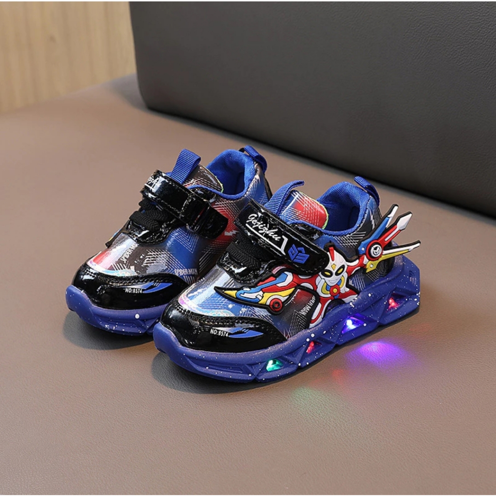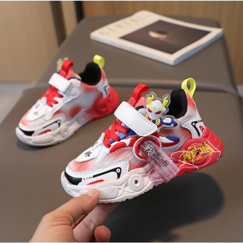 Sepatu Ultraman Anak Laki-Laki Import 100% Lampu LED Nyala/ Sepatu Kets Sneakers Casual Import Anak Cowok 123456 Tahun T