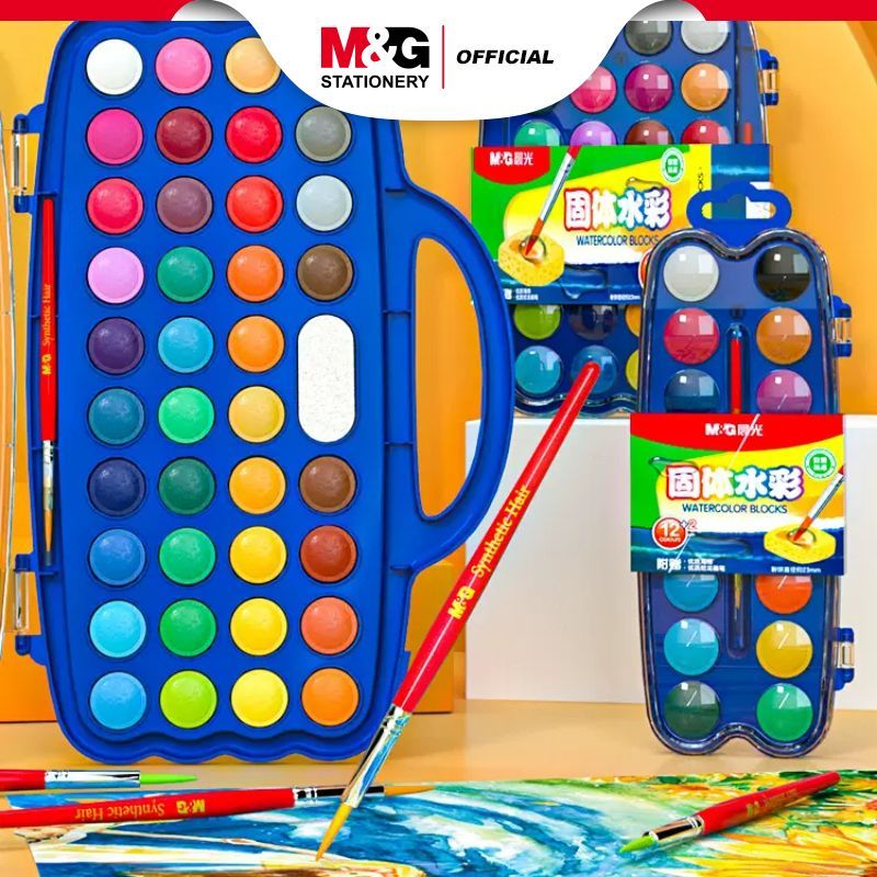 M&G Cat Air Lukis Watercolor Premium Set 12/24/36 Free Kuas Bisa di Berbagai Permukaan Kanvas Acrylic Color Paint