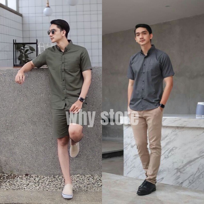 kemeja pria lengan pendek hijau army kemeja kantor tangan pendek kasual kemeja kerja slimfit I atasan pria I baju pria