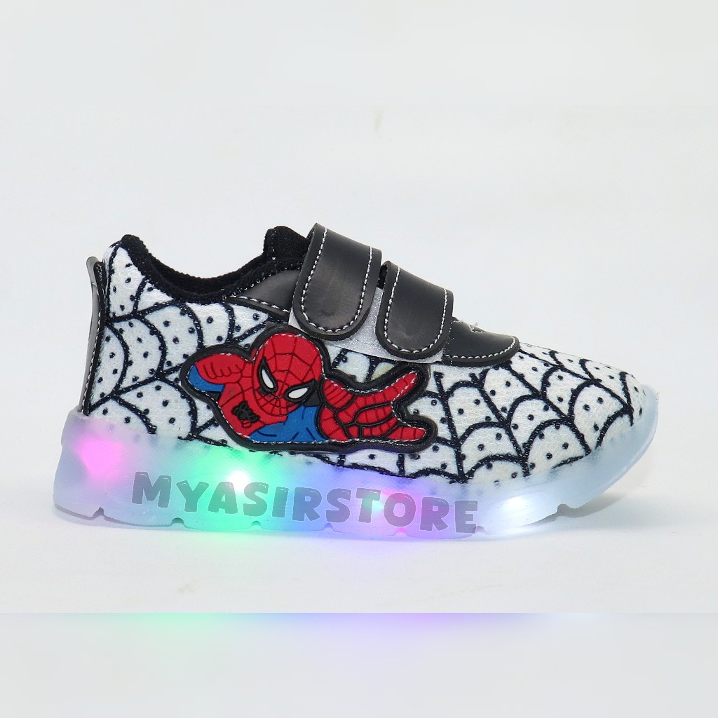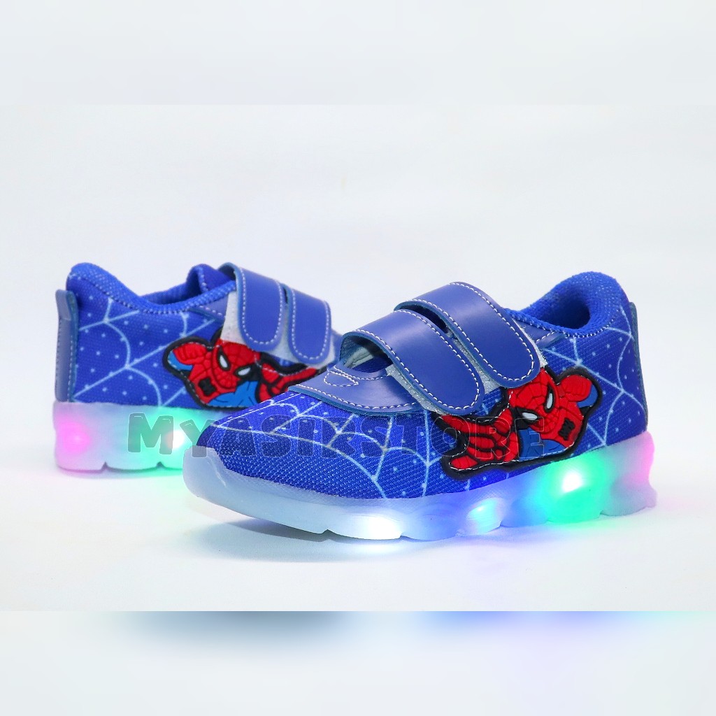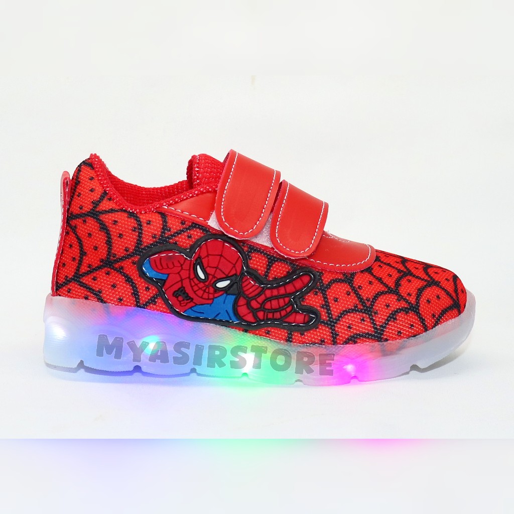 Myasirolshop Sepatu Sneaker Anak Laki Laki Dengan Lampu Terang Sepatu Led Karakter Spider Uk 22-30 Terbaru