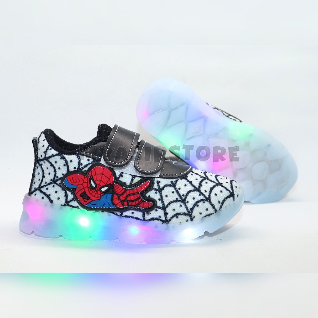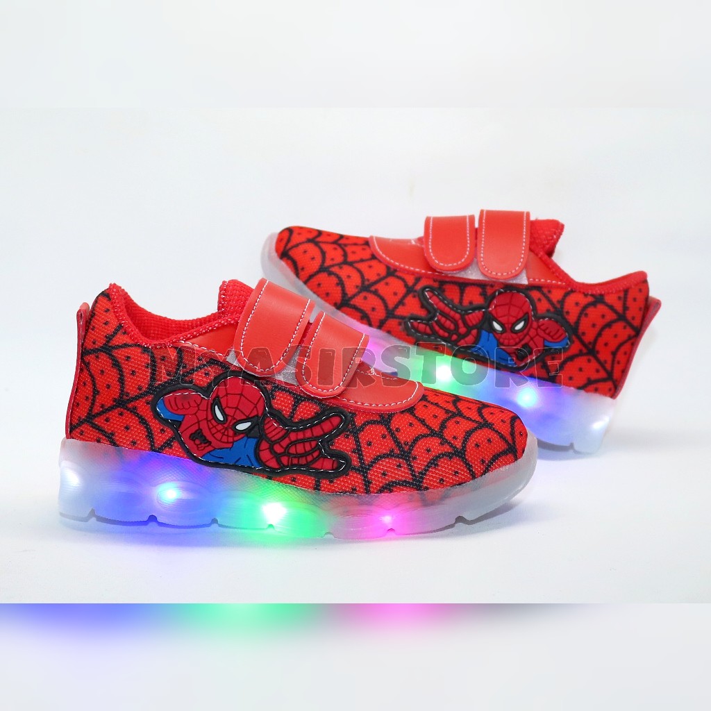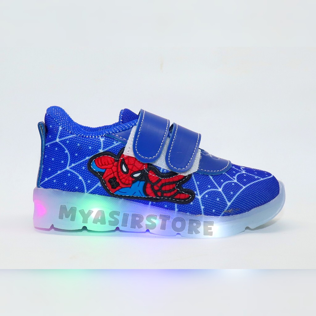 Myasirolshop Sepatu Sneaker Anak Laki Laki Dengan Lampu Terang Sepatu Led Karakter Spider Uk 22-30 Terbaru