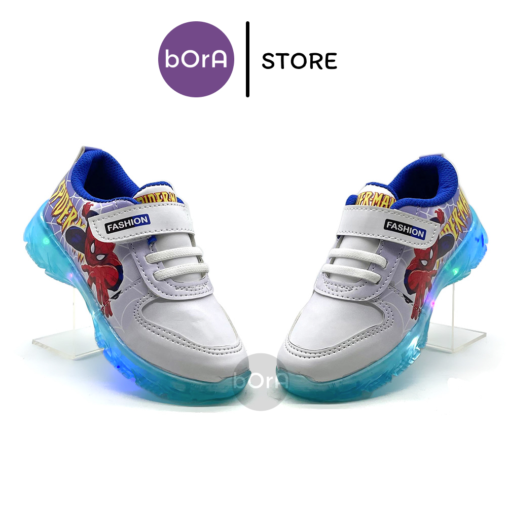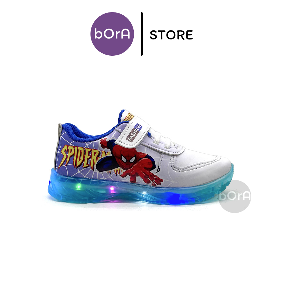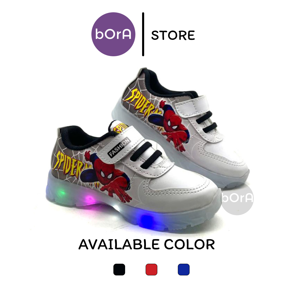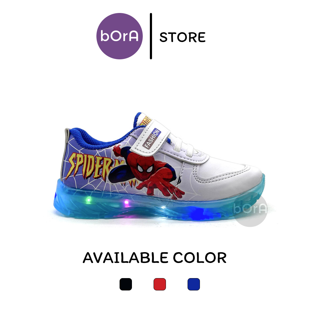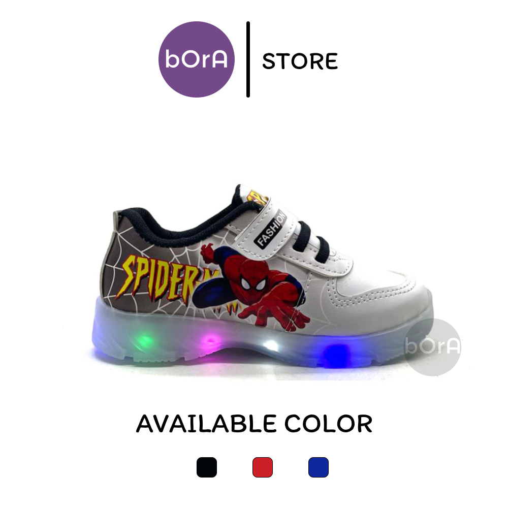 Sepatu Sneakers Anak Laki-Laki Spiderman Terbaru Gradasi LED Menyala Keren Ukuran 24-32