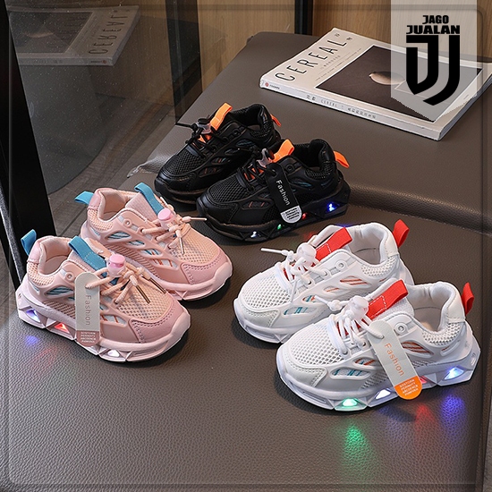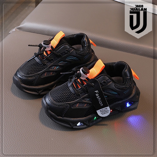 Sepatu Sneakers Tali Lampu LED Anak usia 1 2 3 4 5 6 tahun / Sepatu Kets Tali Stopper Anak Laki Laki Perempuan Sporty /