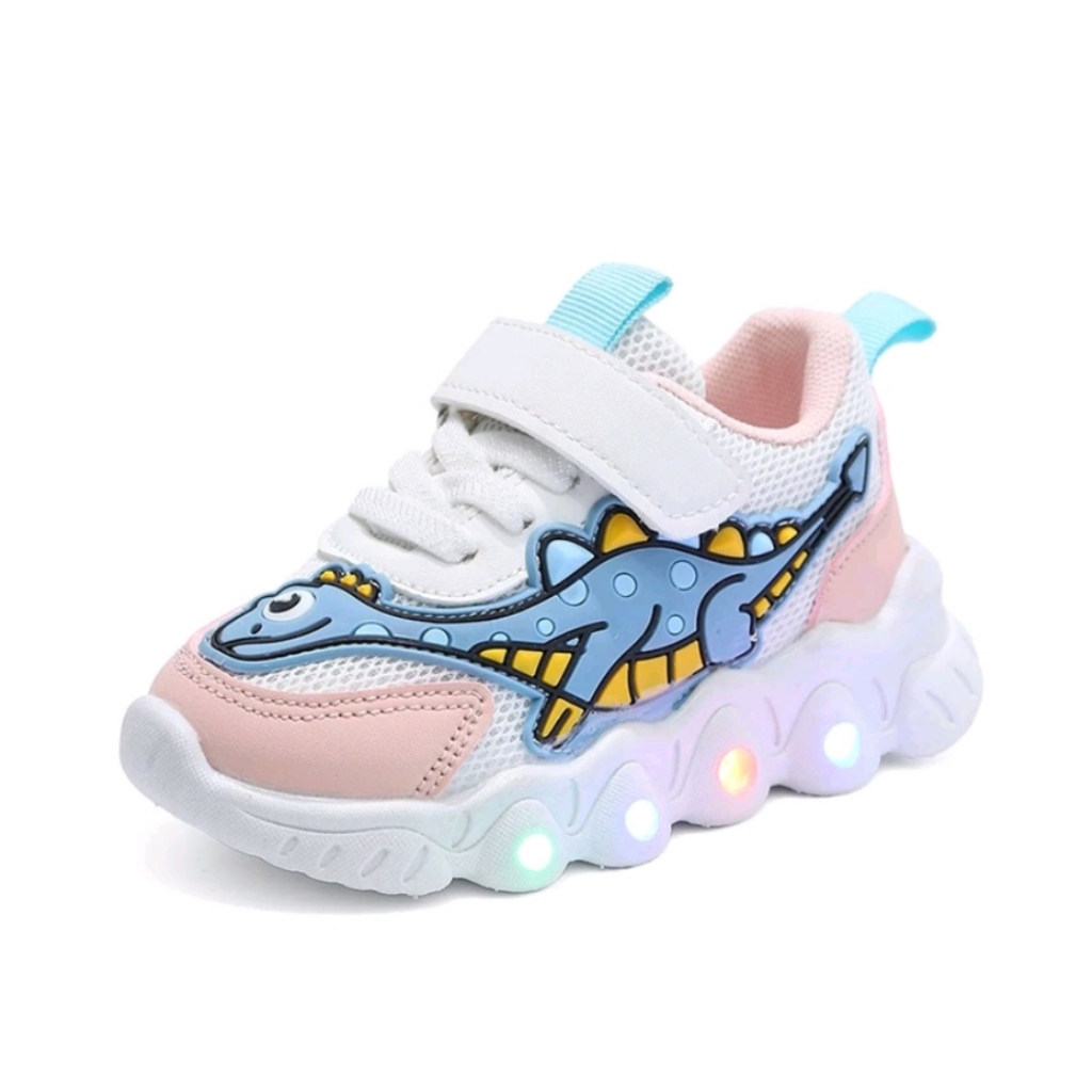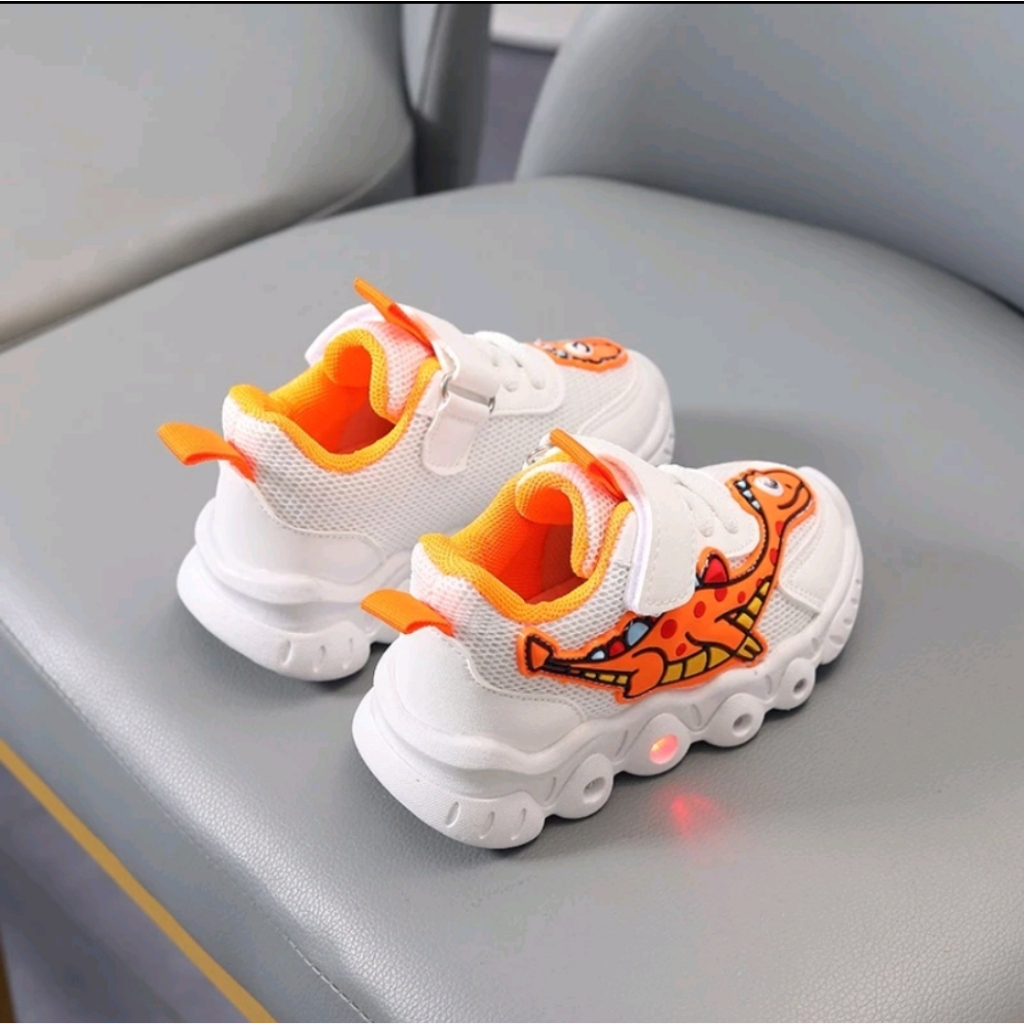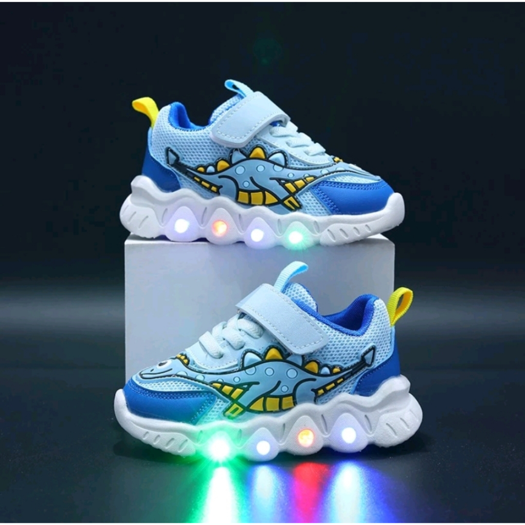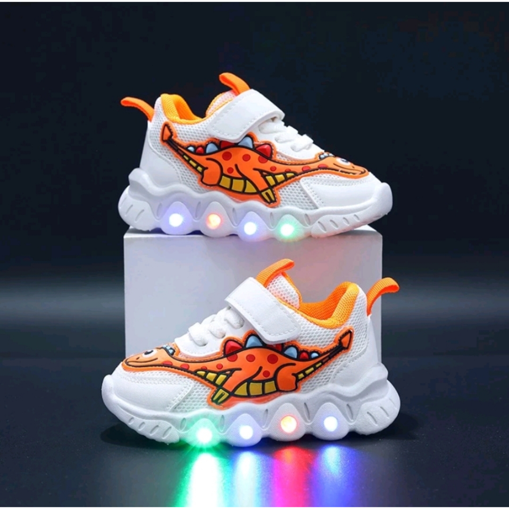 Sepatu LED Import Dinosaurus Trex Anak Laki-Laki Perempuan Lucu Murah Sepatu Kets Sport LED Anak Cowok Cewek Kartun Dino