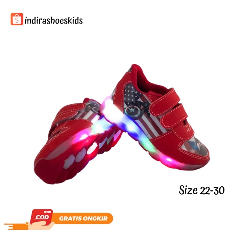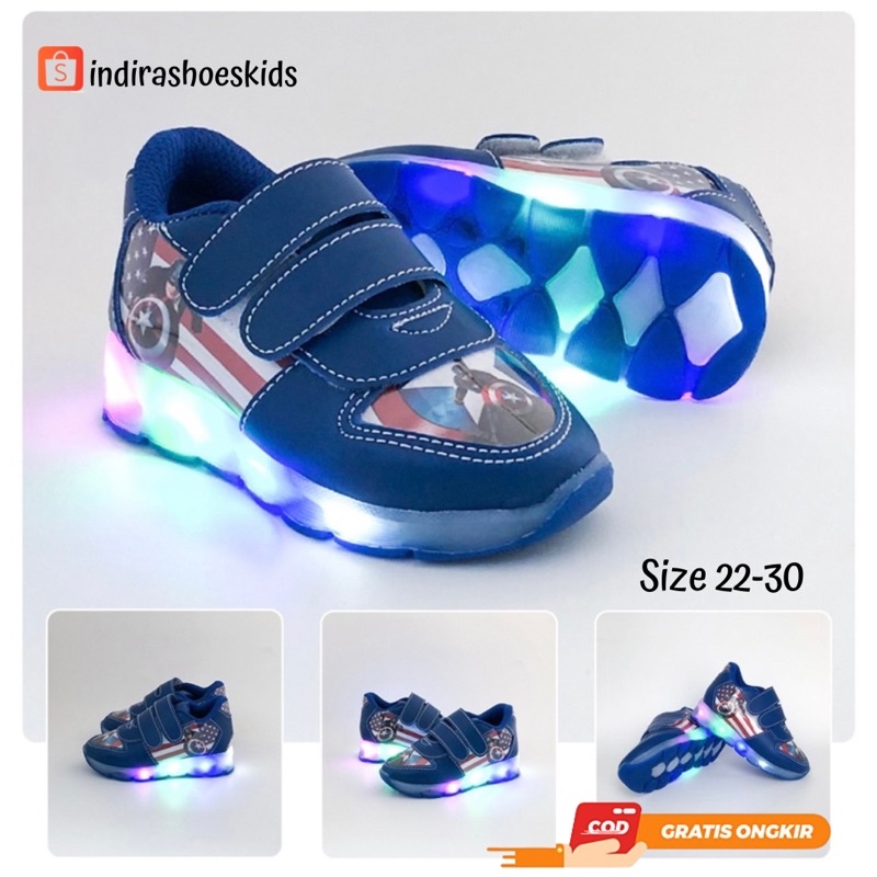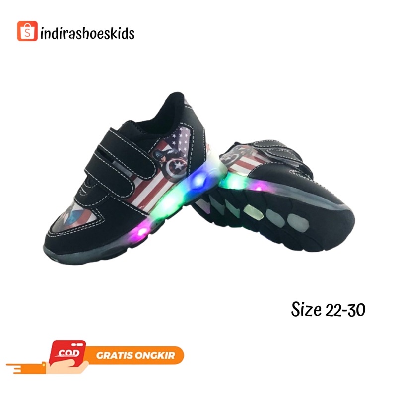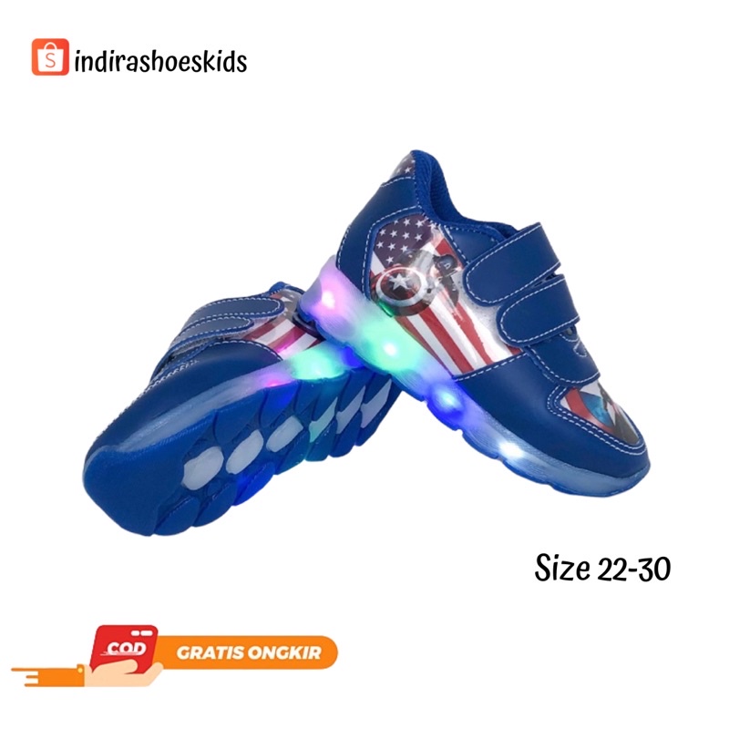 Sepatu Sneakers LED Anak Laki-laki Kartun Marvel Captain Amerika Terbaru