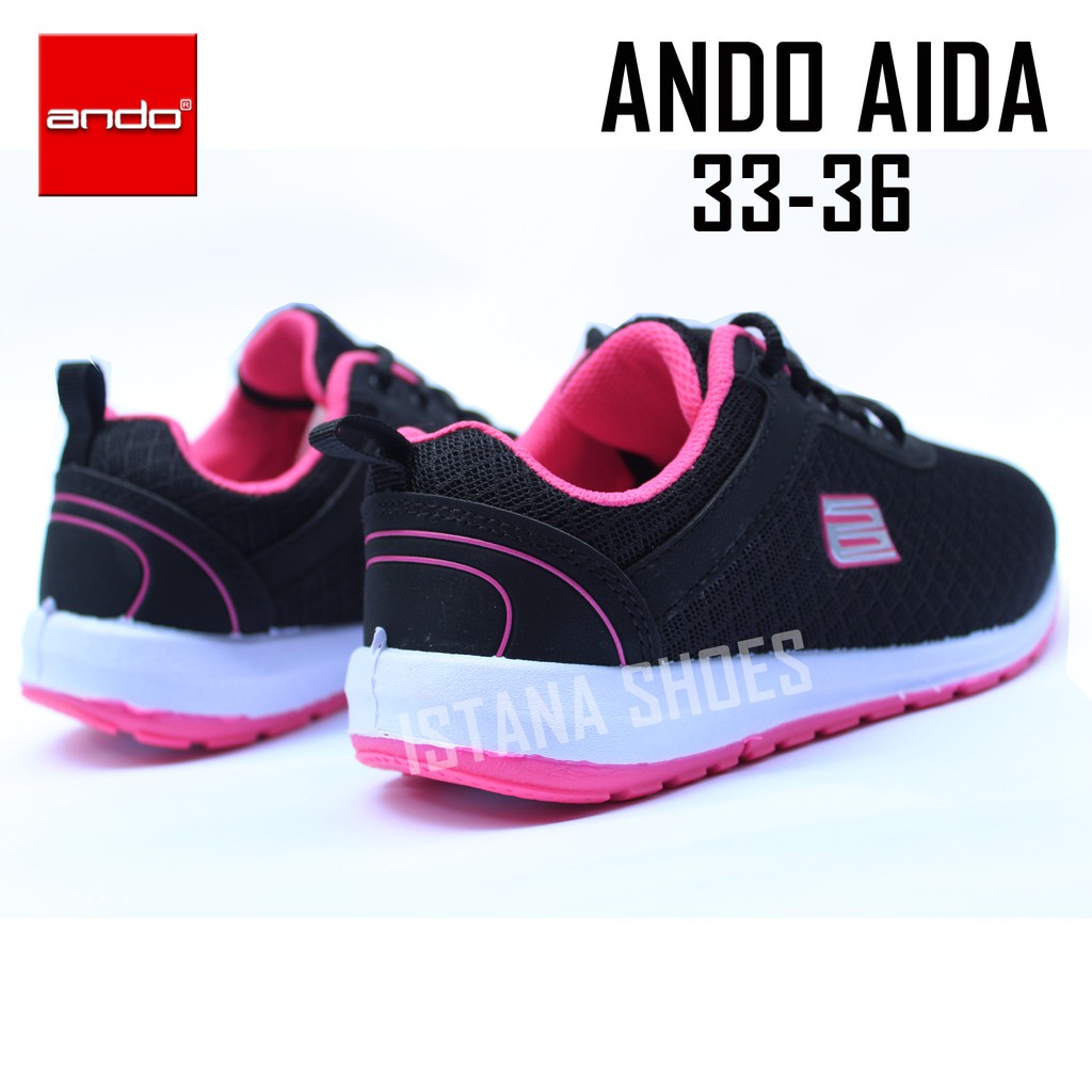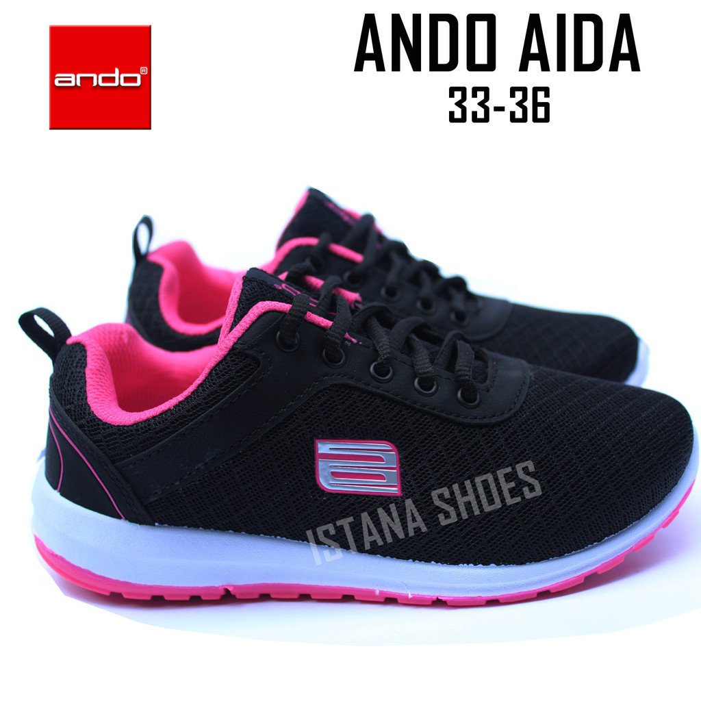 SEPATU ANAK SEKOLAH PEREMPUAN MODEL TERBARU AIDA BY ANDO HITAM PINK SD SMP SMA REMAJA SNEAKERS