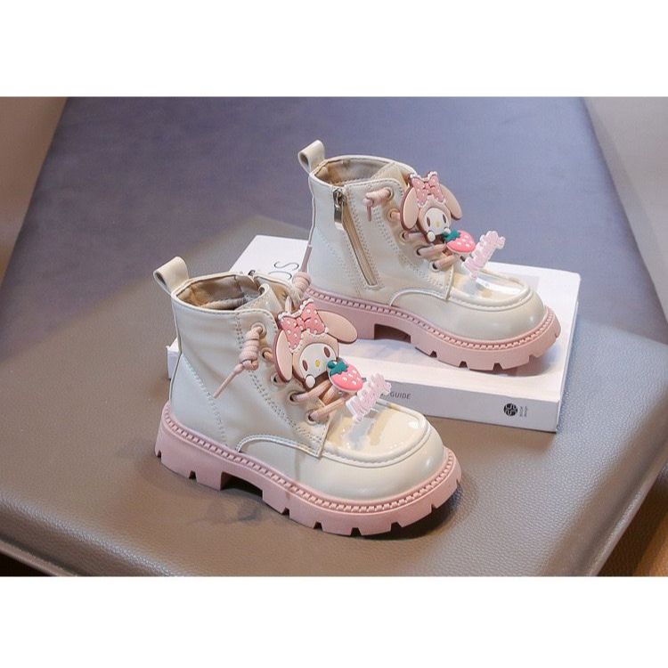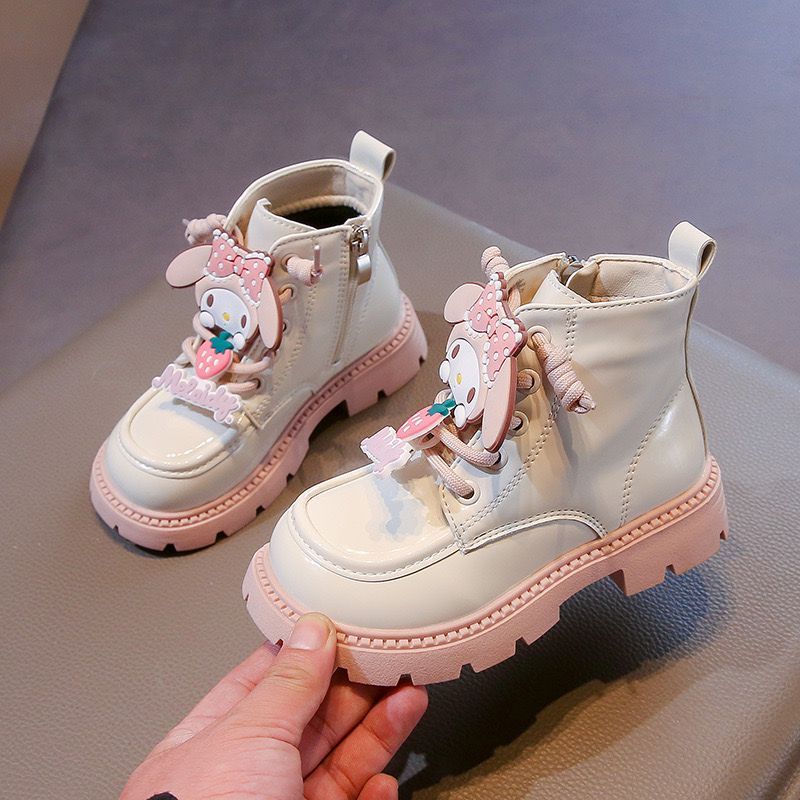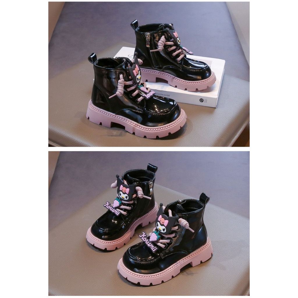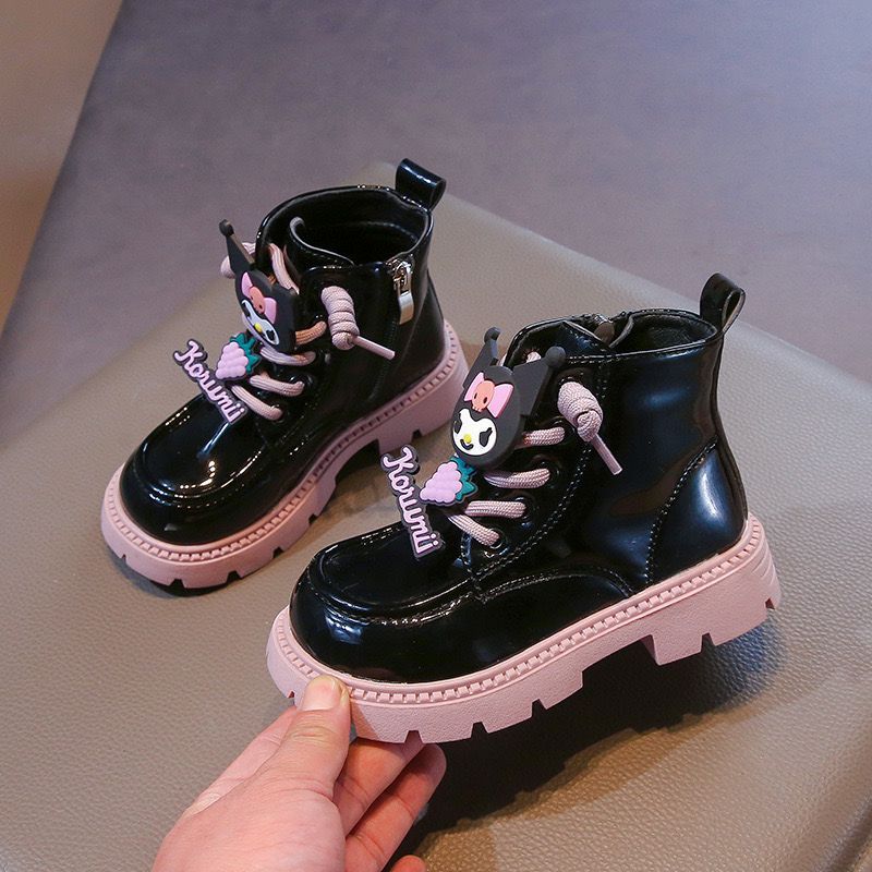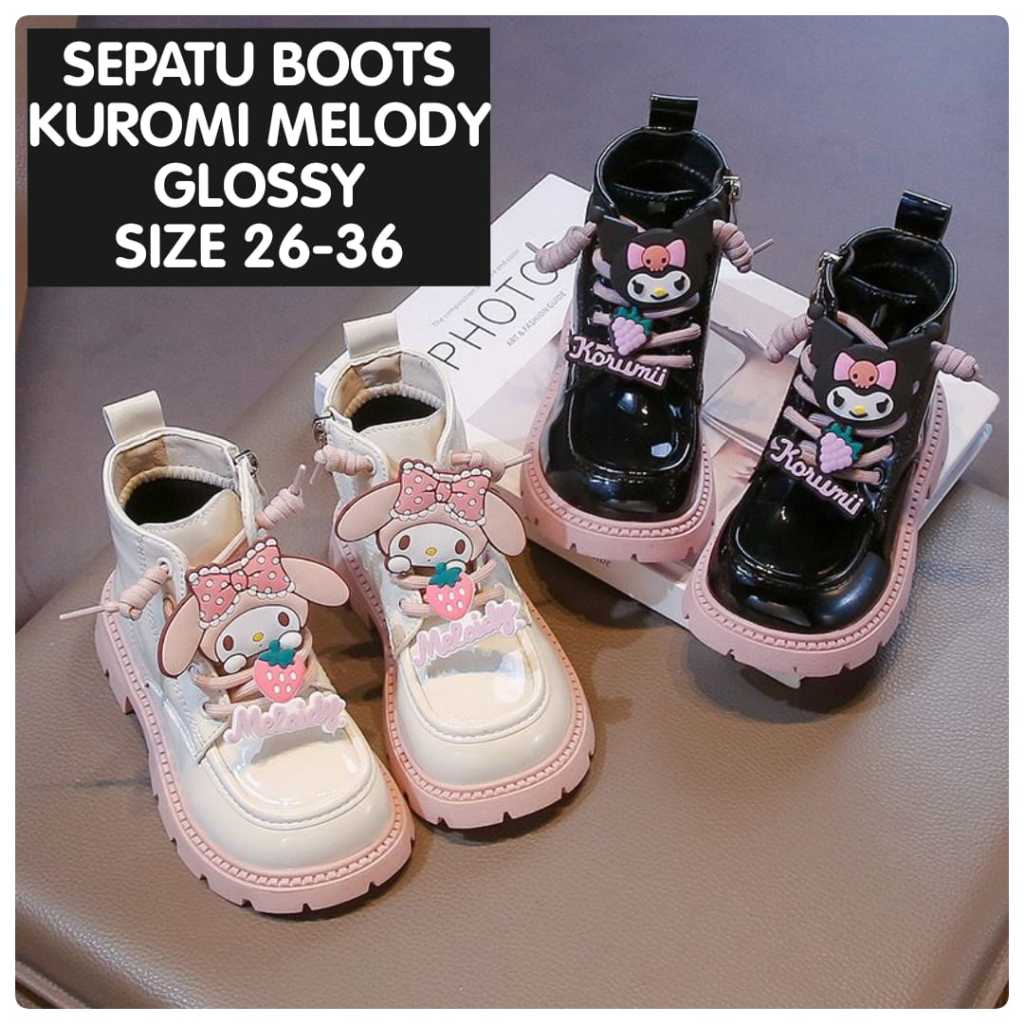 (LOLI-JKT) SB- K1003 SEPATU BOOTS ANAK KUROMI MELODY GLOSSY TALI RESLETING SAMPING SIZE 26-36