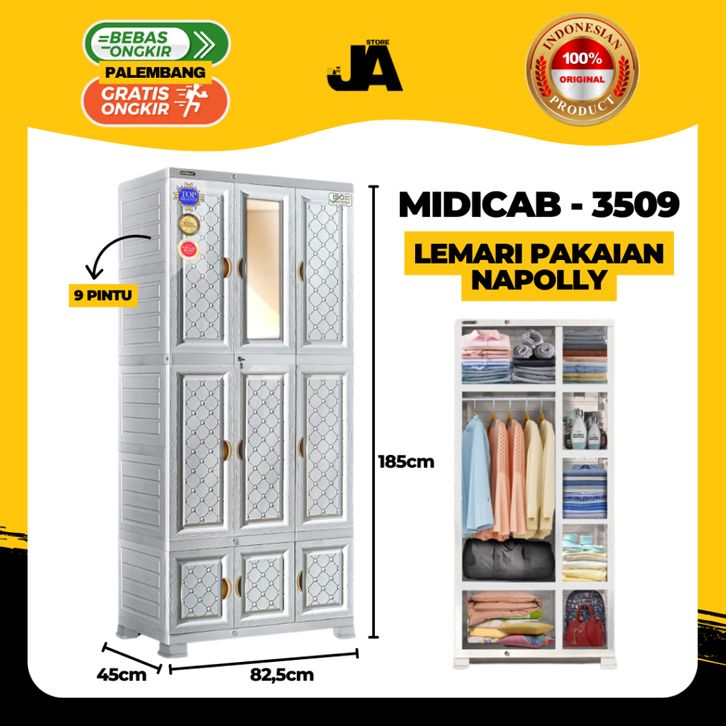 PROMO Lemari Pakaian Plastik Napolly MIDICAB-3509 C ION PUMA / 9 Pintu / Rak Laci Berkualitas Palembang ORIGINAL