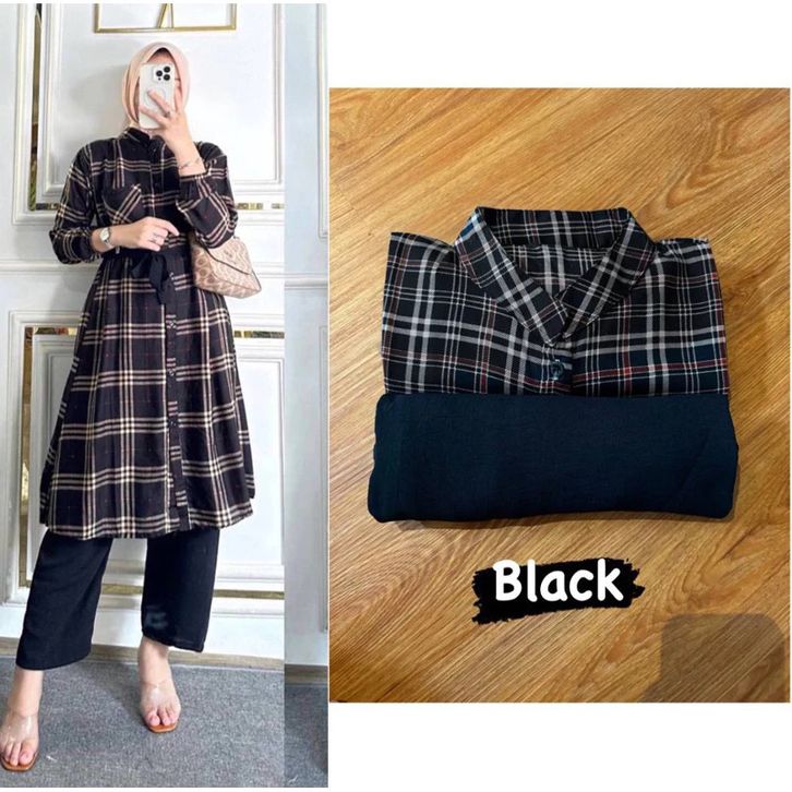 Setelan tunik wanita garis kotak terbaru Ratri Set Long Tunik Motif Kotak