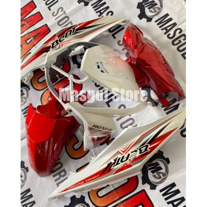 Cover Full body halus Honda Beat Fi 2015-2016 Esp Stater Halus Merah putih plus Striping