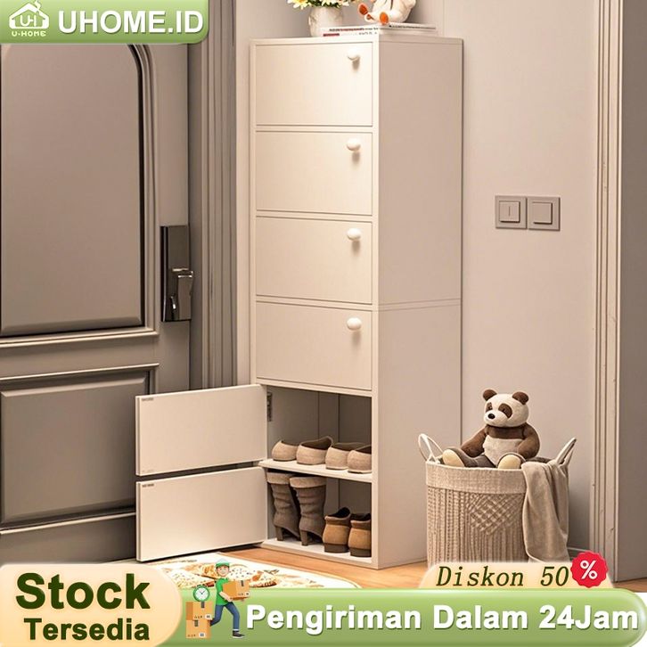 Lemari Sepatu Tertutup Susun Minimalis Rak Sepatu Kuat Anti Debu Kayu Penyimpanan Serba.a Ruang Kecil