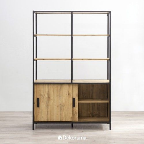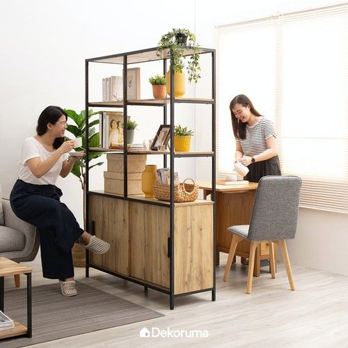 Dekoruma Kozu Rak Buku Minimalis Display 3 Susun Serbaguna dengan Lemari 2 Pintu Sliding